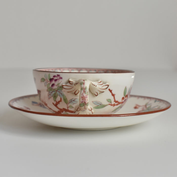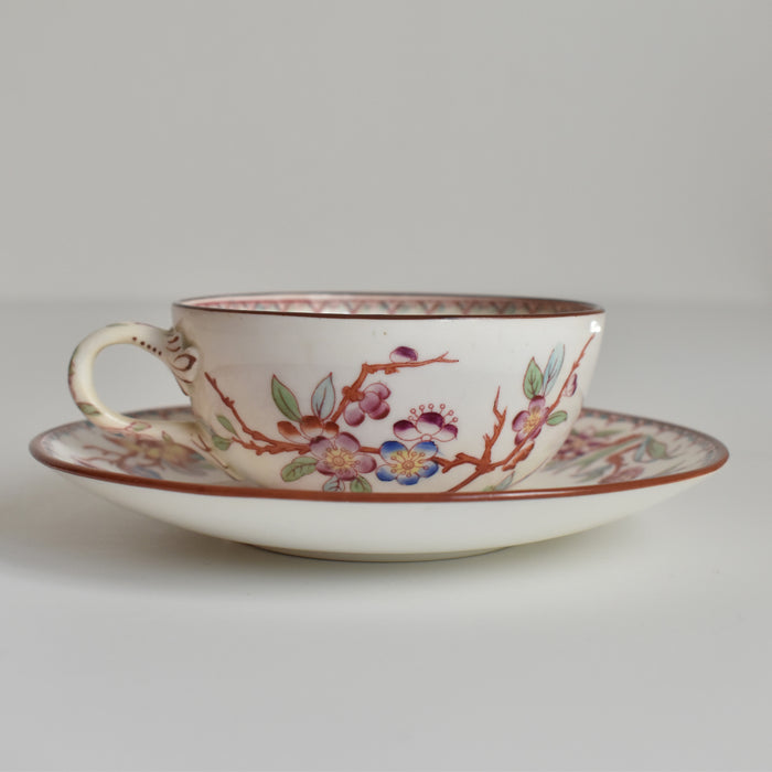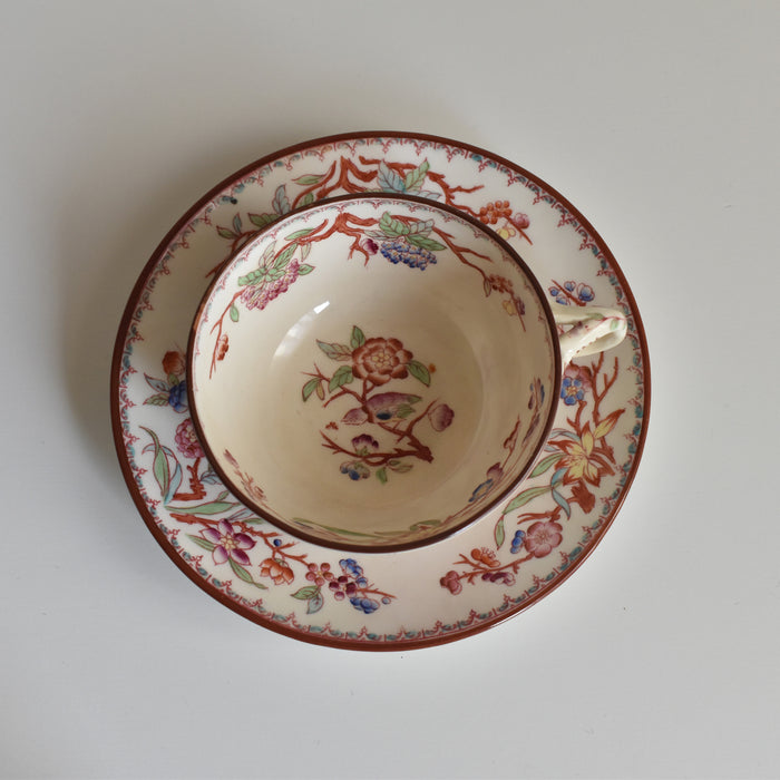Sarreguemines窯のアンティークティーカップアンドソーサー Minton柄252番です。