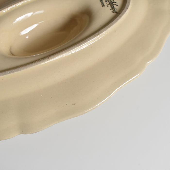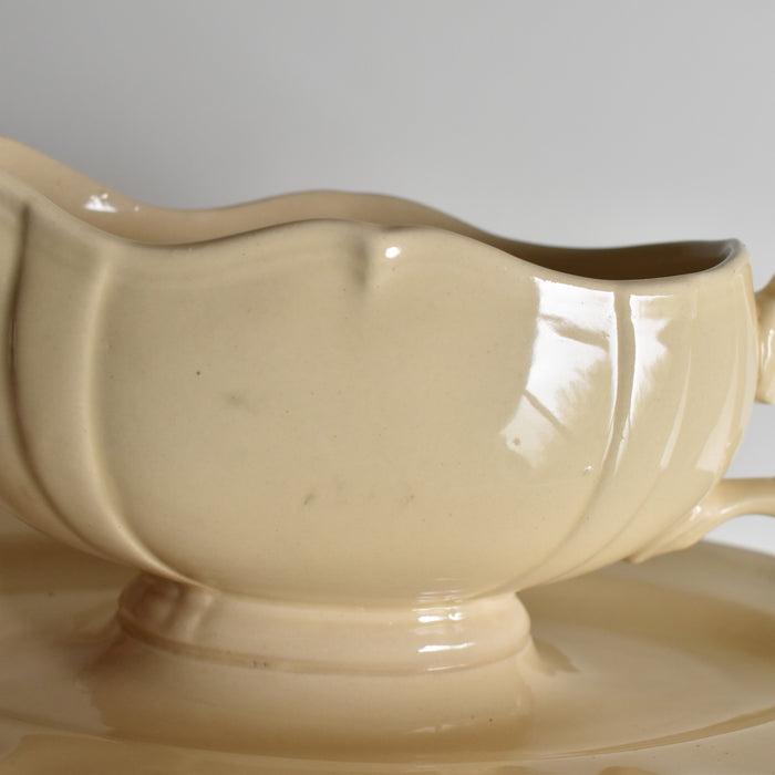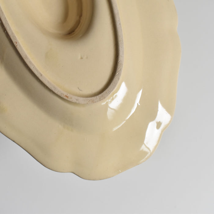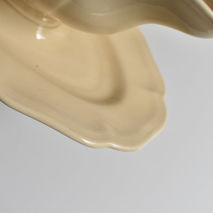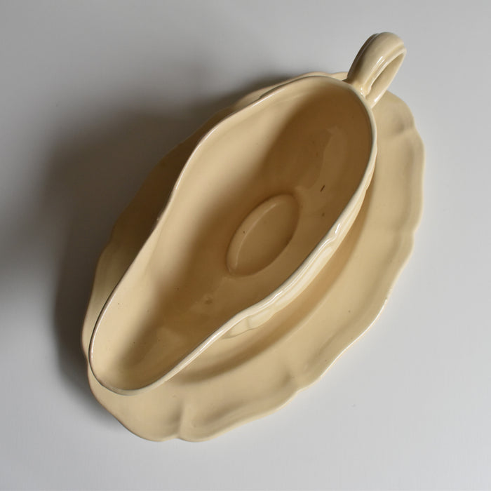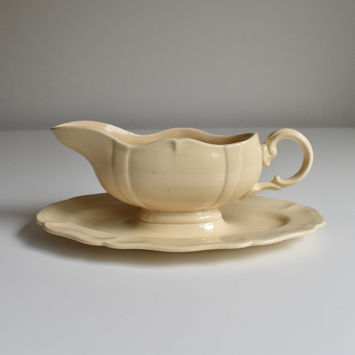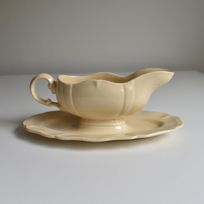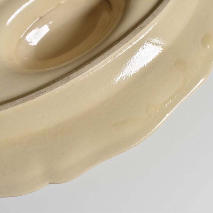 受け皿部分は花リムで可愛らしくソース皿部分にもレリーフが施され、素朴さの中に可憐さを感じます。