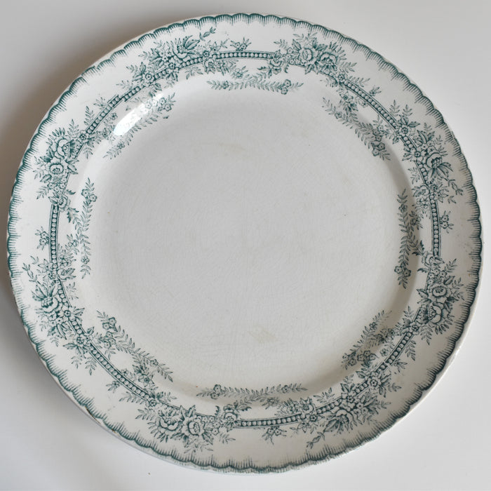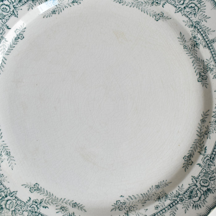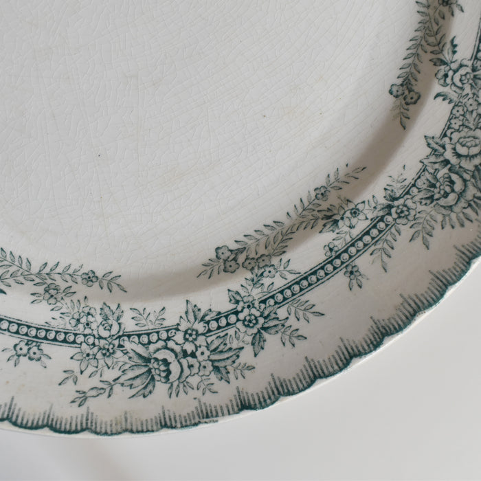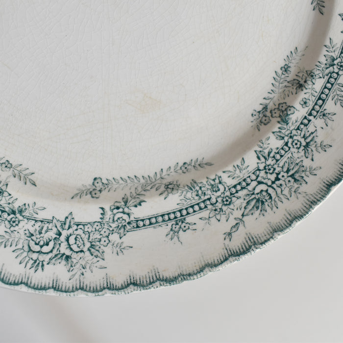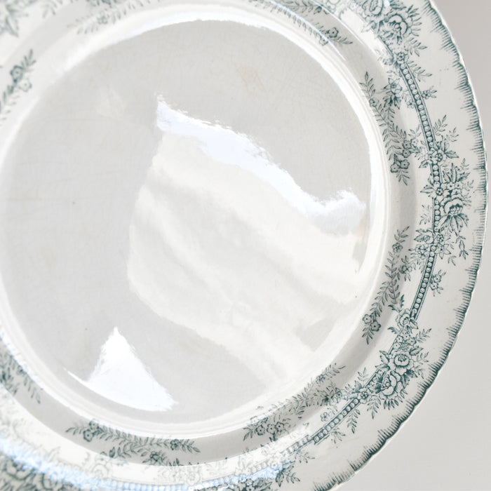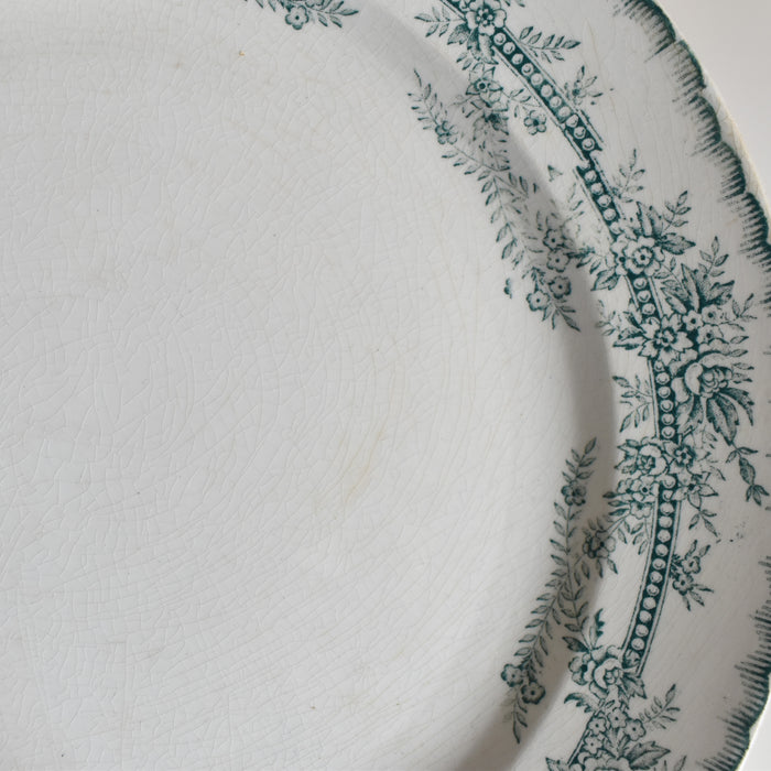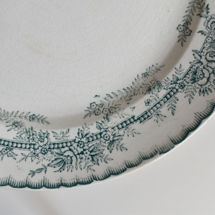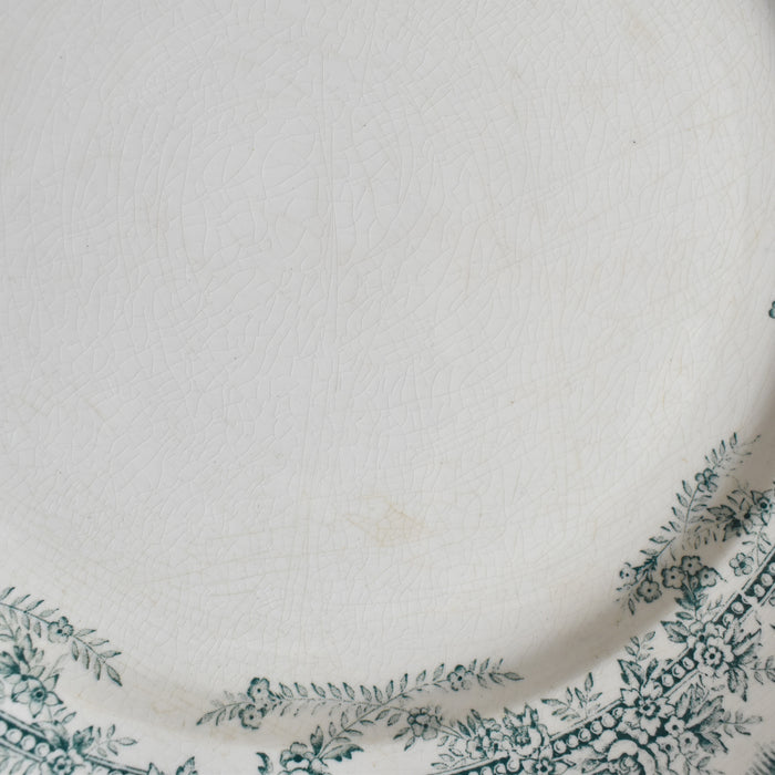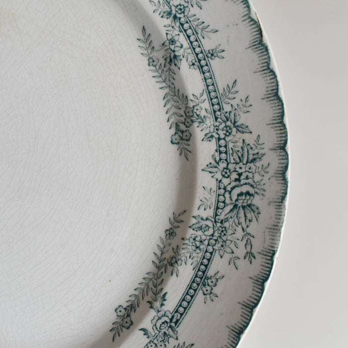 透き通るような白に、しっとりと落ち着きのある緑の花模様が描かれた美しいプレート。