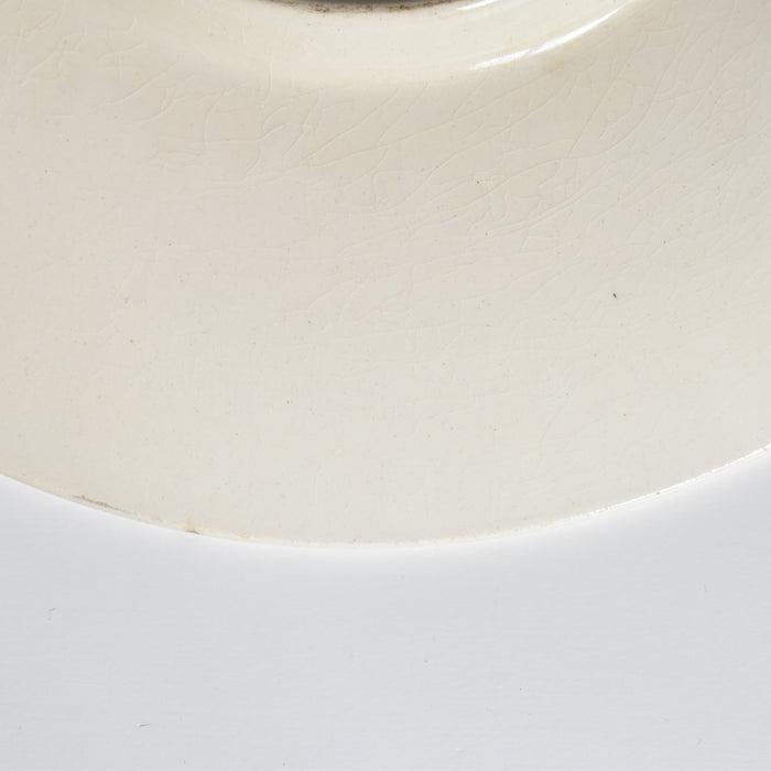 縁から見込み部分にかけてフラットなデザイン。こちらのアンティーク大皿は、タルトなどを盛り付けていたのでしょう。大きめのタルトやケーキを美しく盛り付けたくなる一品です。