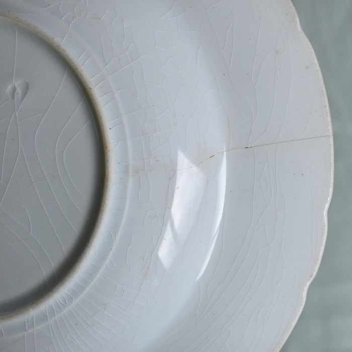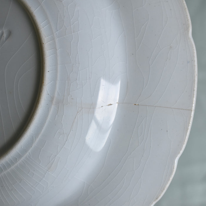 カトラリーの跡やシミなどが少なくて使用感が少ないが、大きめのヒビがございます。
