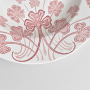 落ち着いたボルドーに近いピンク色で描かれたのは、生命力あふれるクローバー。