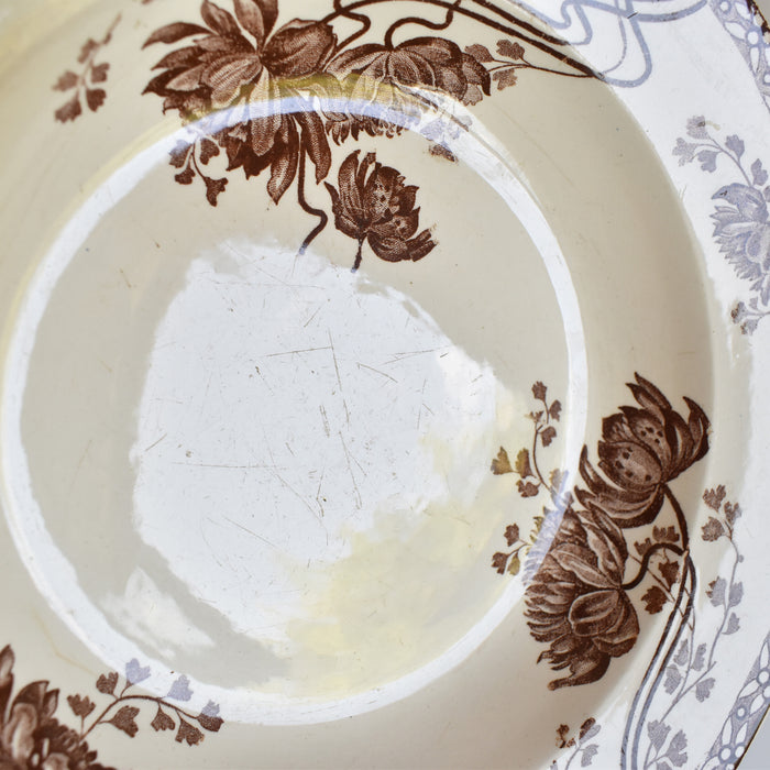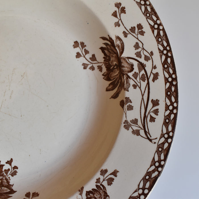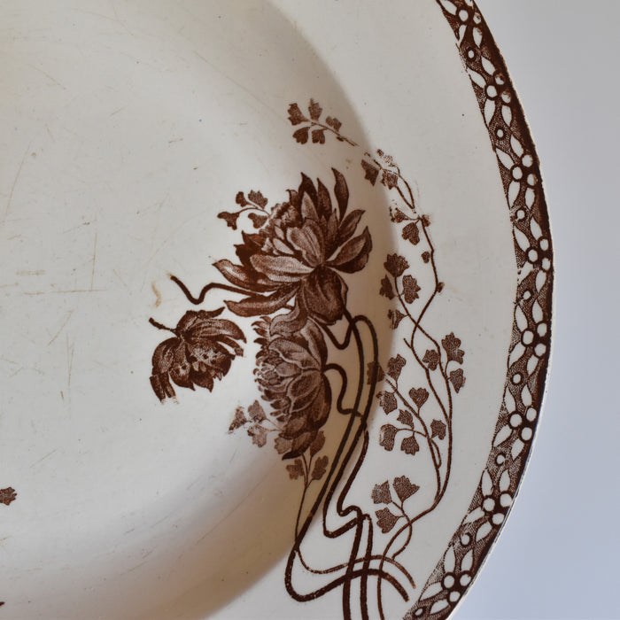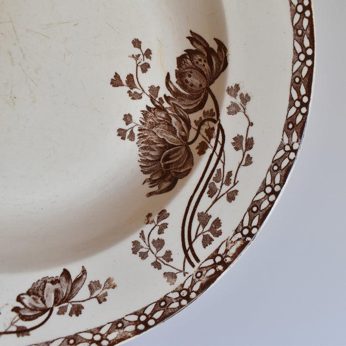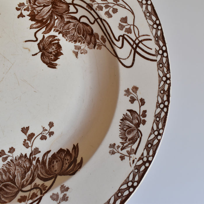 Sarreguemines窯のアンティーク深皿Royatシリーズの茶色い版です。