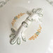 可愛らしい小花、葉っぱ、リボンが縁を彩っています。