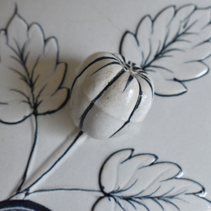 蓋のつまみ部分がイチヂクの実になっていて、どのアングルから見ても可愛らしく魅力的。棚に飾って楽しみたくなるスーピエールです。