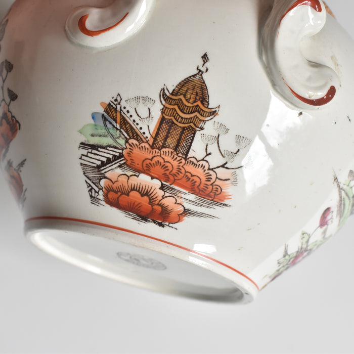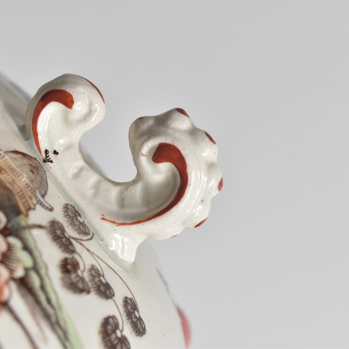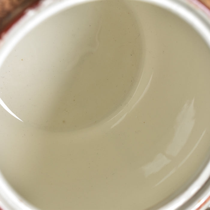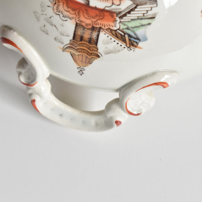 可愛いらしいフォルムが素敵なシュガーポットです。周りに風景が描かれていてハンドペイントで色がつけられています。
