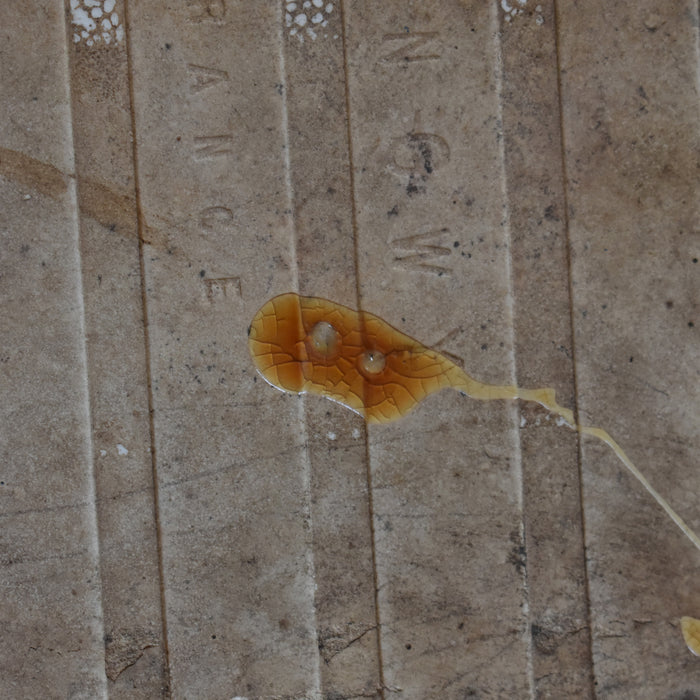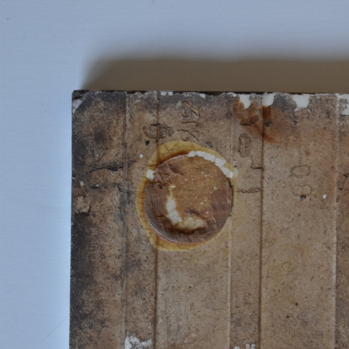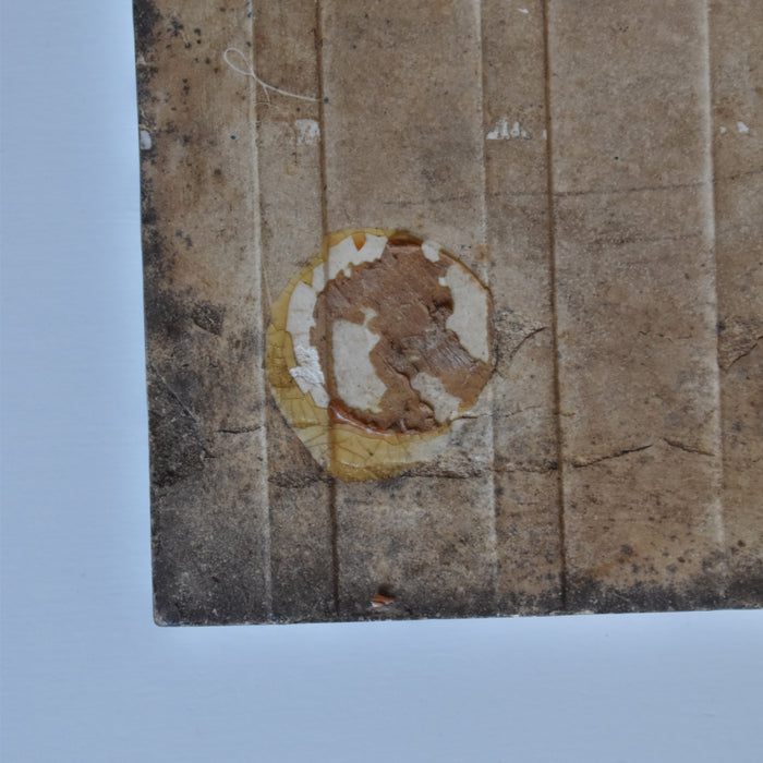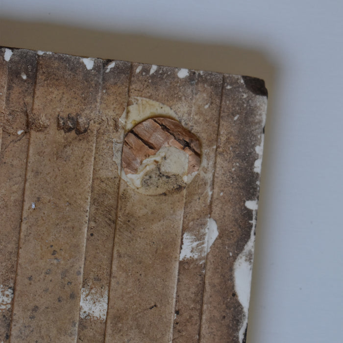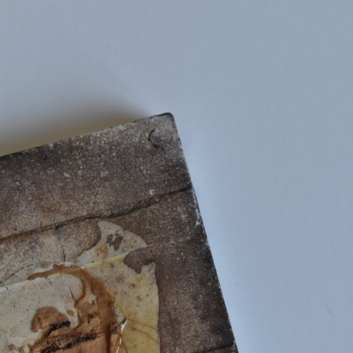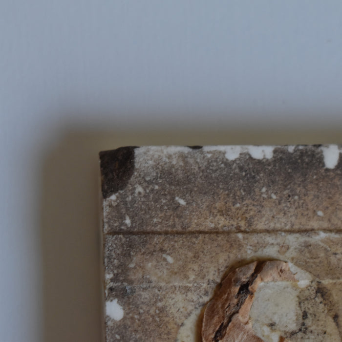 鍋敷きとして使用されていたものと思われます。裏には高さを上げるためコルクがつけられており、その後切られたものだと考えています。