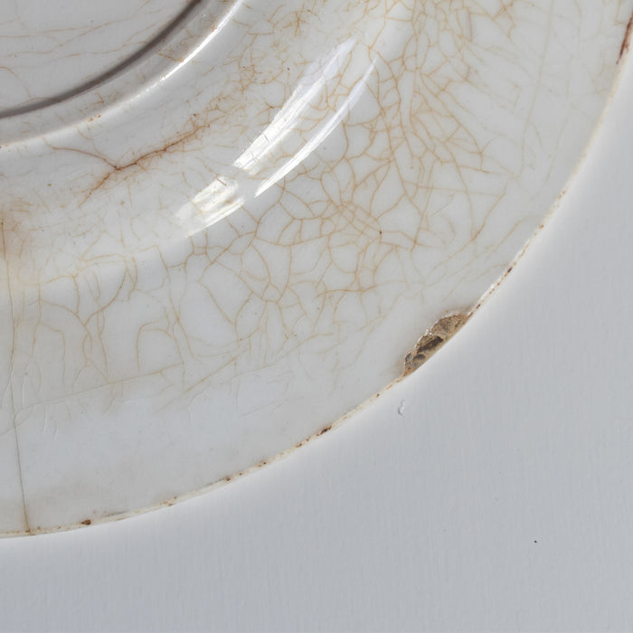 状態:大きいヒビがあるため飾るためのみになります。貫入やシミも見られ縁に大きいかけもございます。