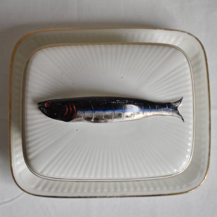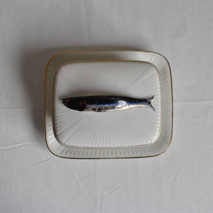 19世紀の終わりから20世紀初期、でオイルサーディン専用の食器になっております。