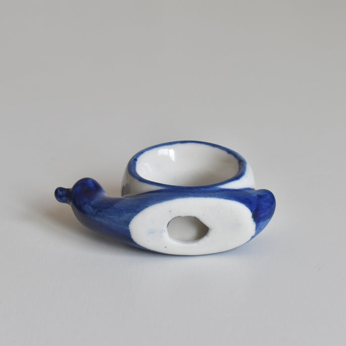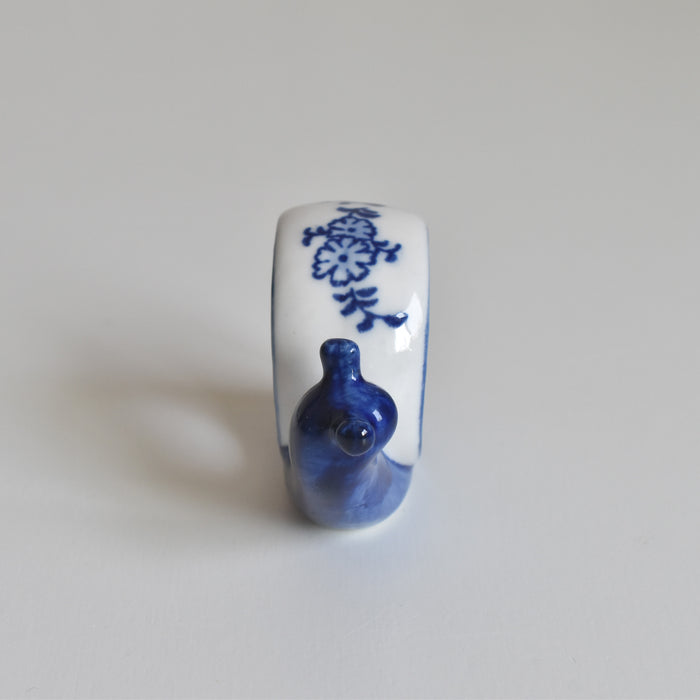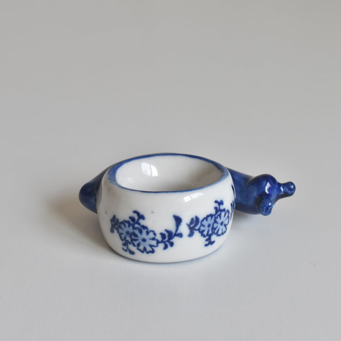 70年代に作られたとみられる陶器製で、繊細なブルーの絵付けが特徴的。