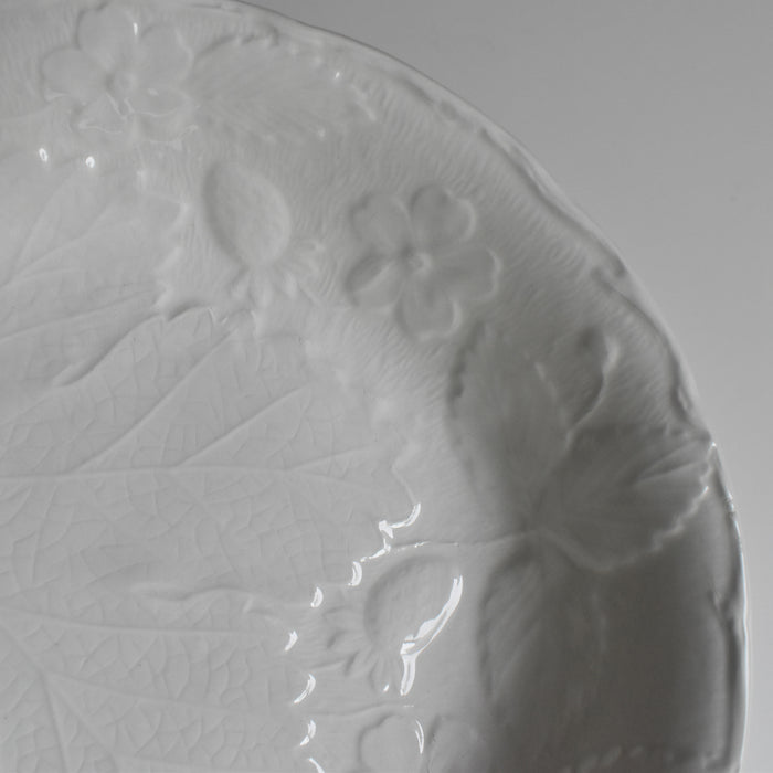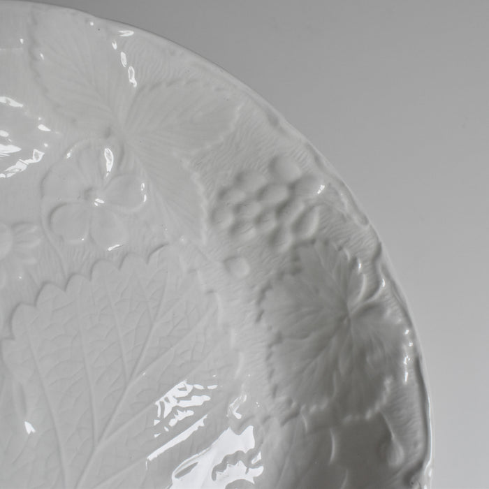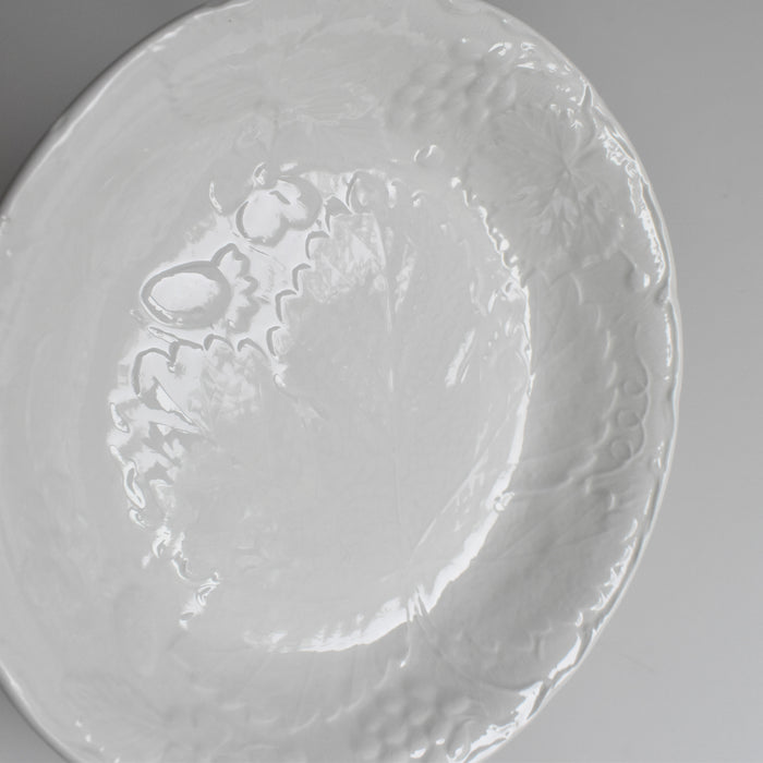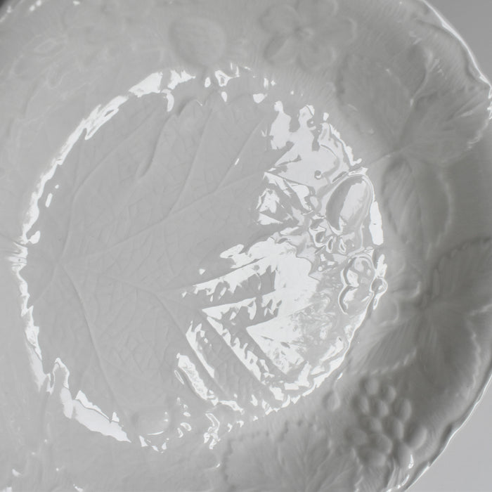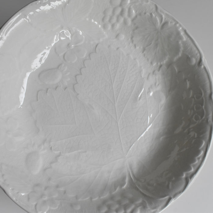 純白の深皿にたっぷりのレリーフがあしらわれたデザインは、清楚さと可憐さが調和した素敵な佇まいです。