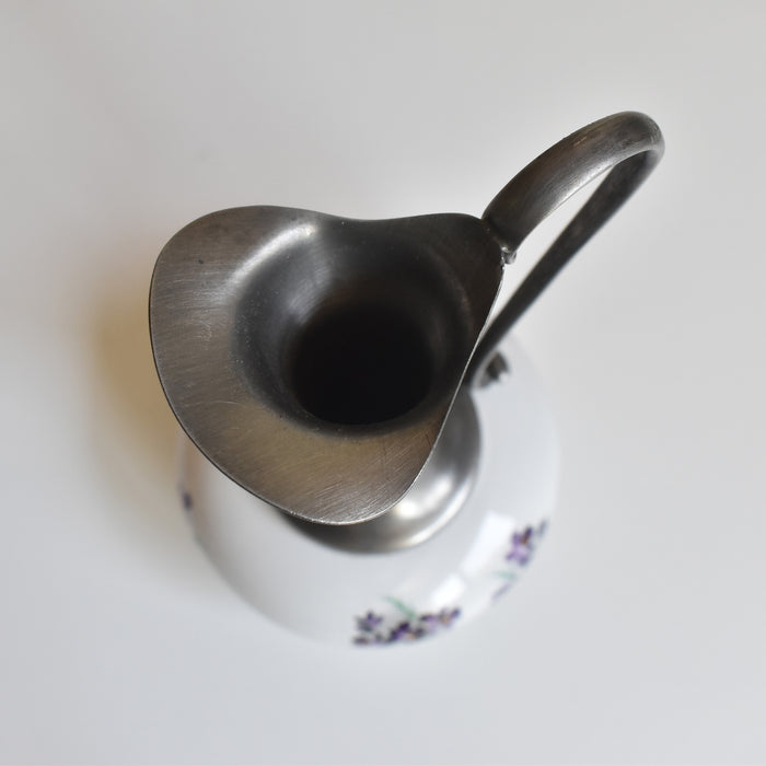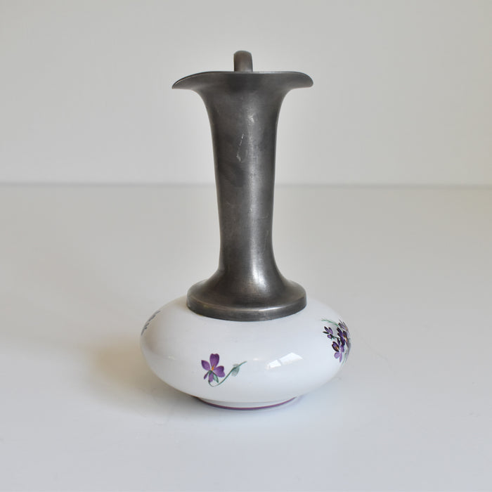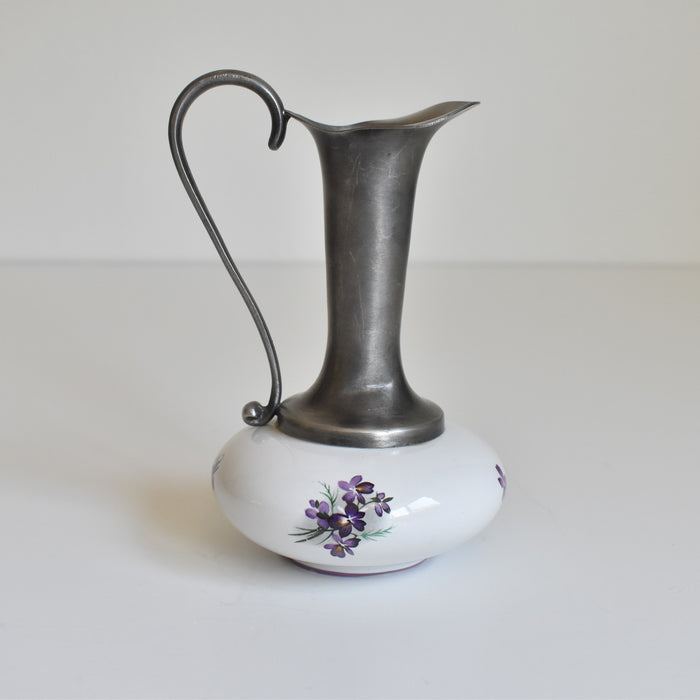 ヴィンテージのピューターと陶器の一輪挿しです。
