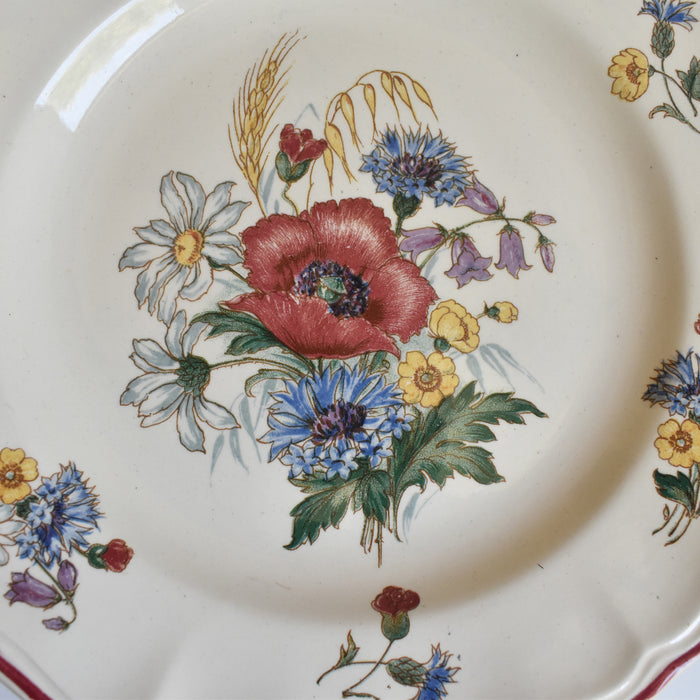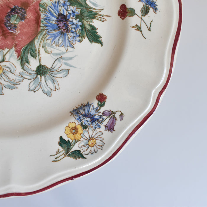 プレートに描かれているポピーやホタルブクロ、アザミや雛菊などのブーケは、フランスの田舎の風景でよく見かける植物ばかり。
