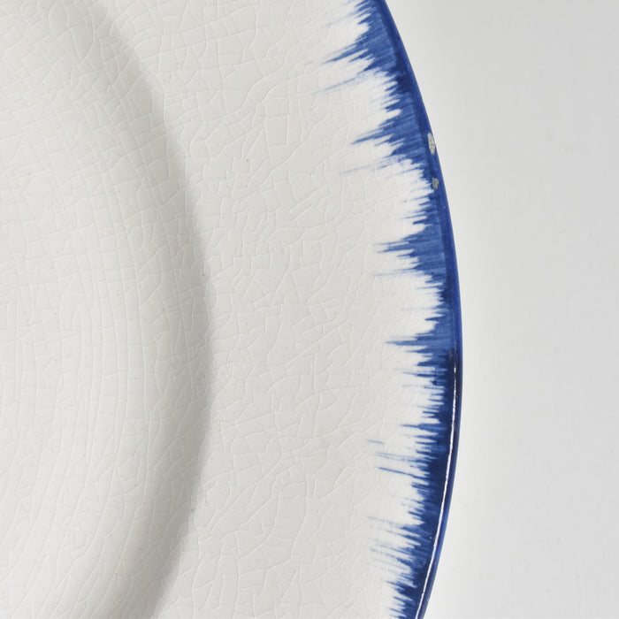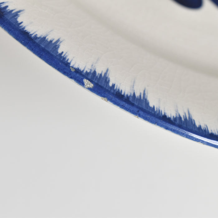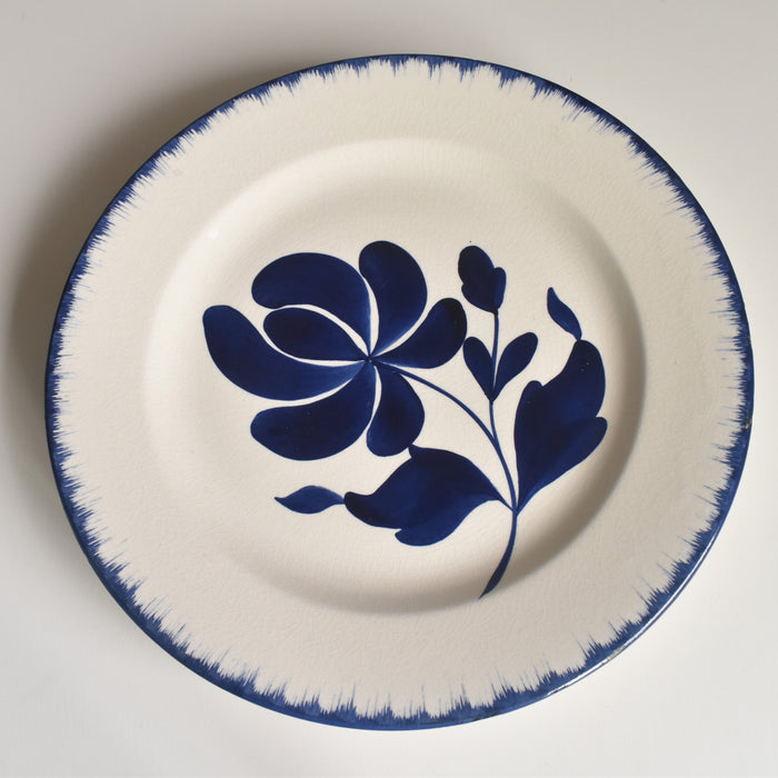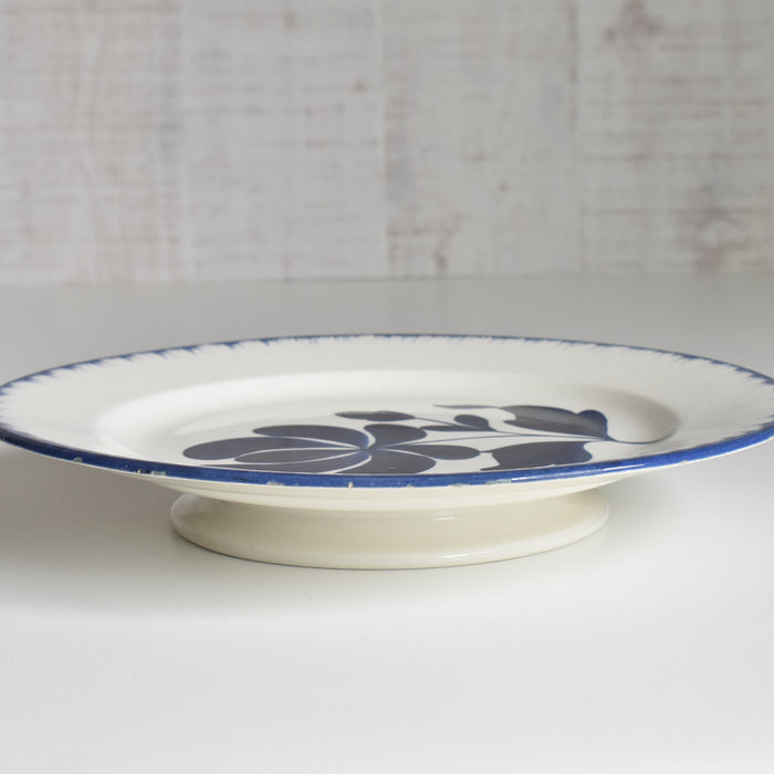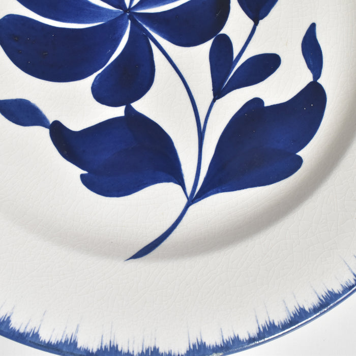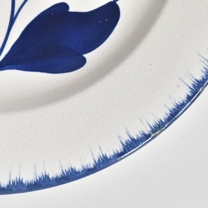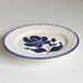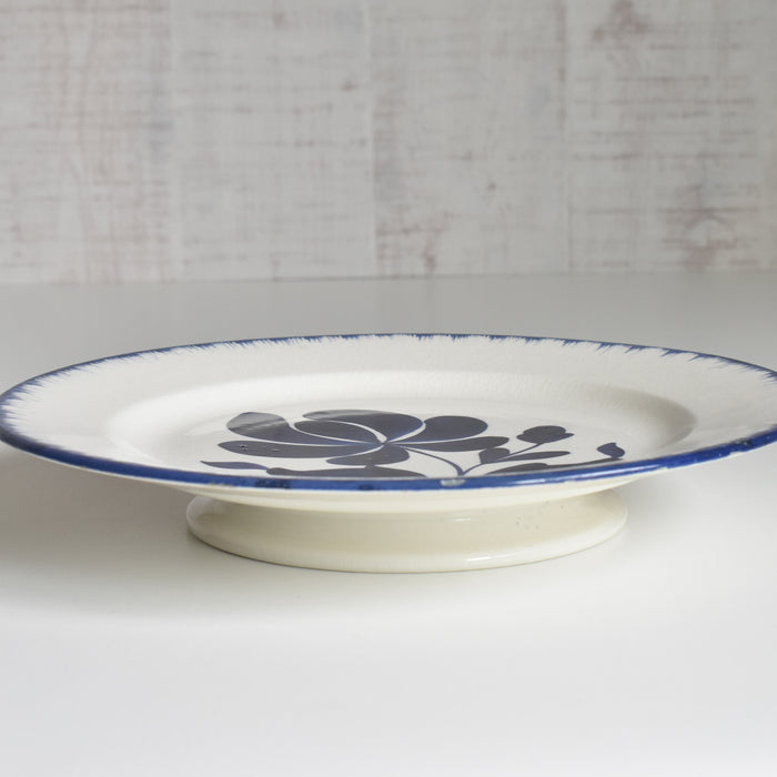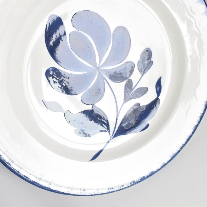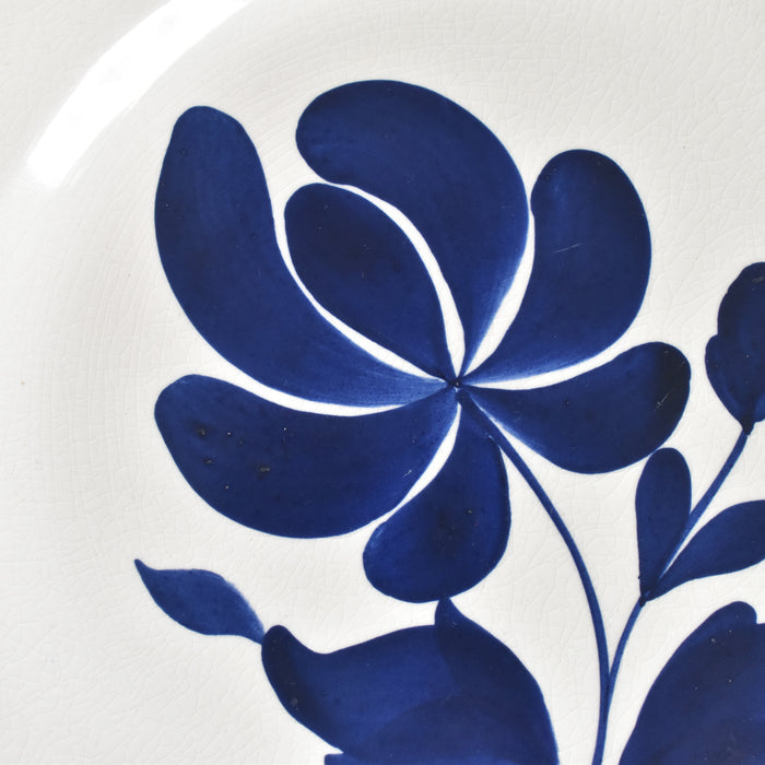 深いブルーで描かれた大胆な花模様と縁取りは、白い素地によく映え、食卓に彩りを添えます。