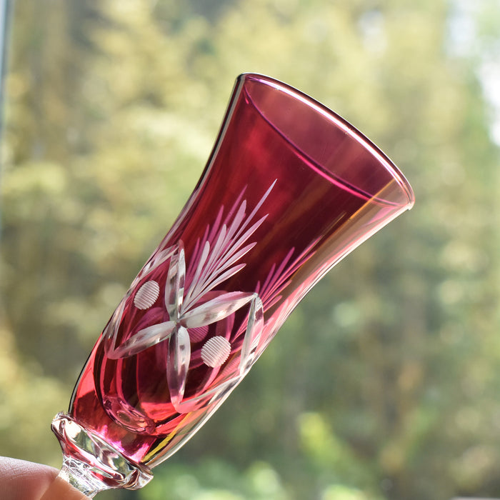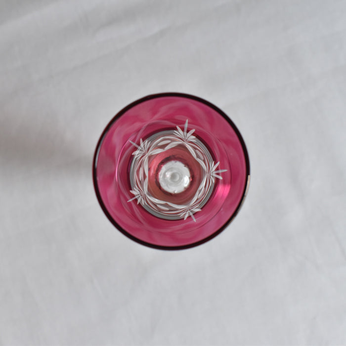 フランス・ブルゴーニュ地方で見つけたシャンパングラス。葡萄のように美しい色が一際目を引きます。