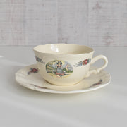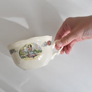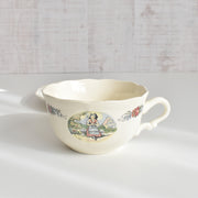 こちらのチョコレートカップ&ソーサーには、アルザスの伝統衣装をまとった女性が描かれた、のどかで美しい風景が配されています。