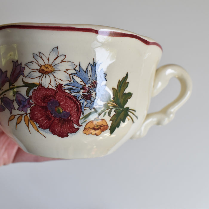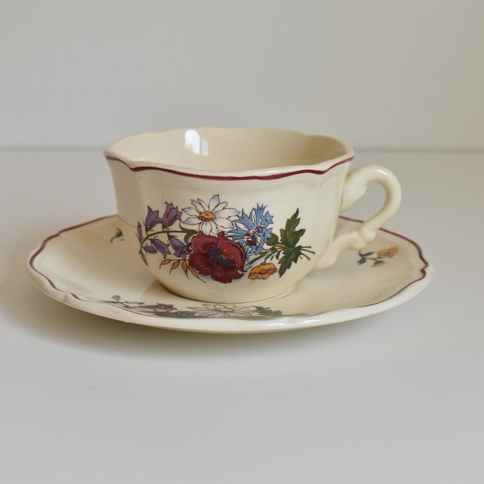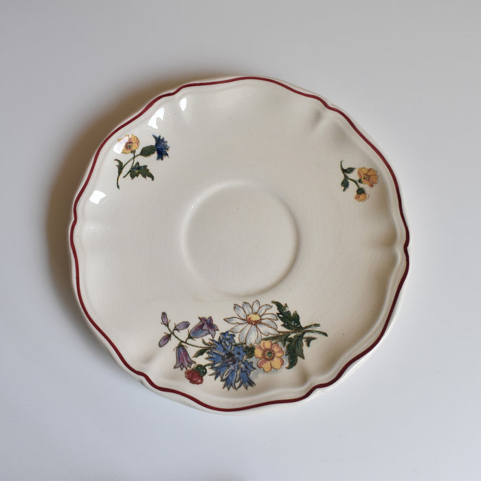 プレートに描かれているポピーやホタルブクロ、アザミや雛菊などのブーケは、フランスの田舎の風景でよく見かける植物ばかり。