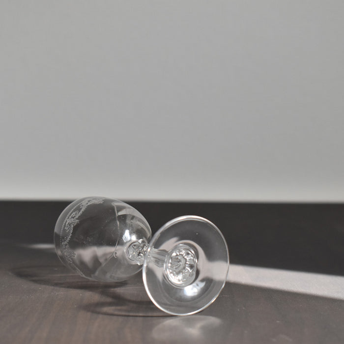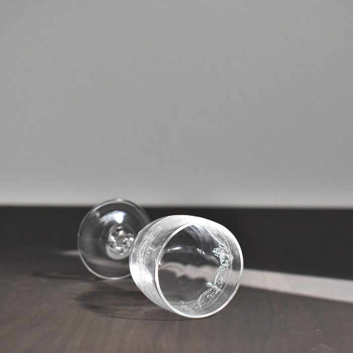 作り手の遊び心や技が光るエッチングが美しいクリスタルグラスです。