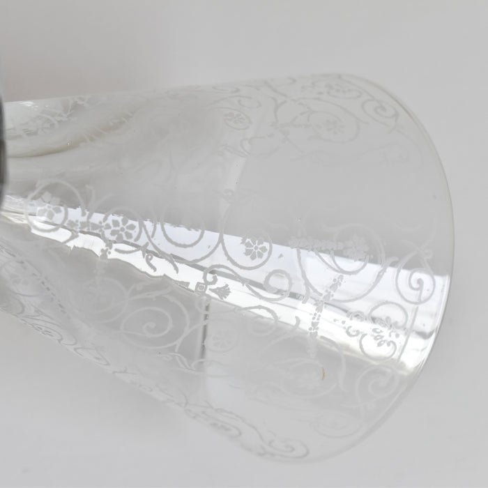 ボウル全体には、繊細で美しい花や唐草模様を思わせるグラヴィールが施されており、光を透かすと優雅な模様が浮かび上がり、見る角度によって異なる表情を楽しめます。