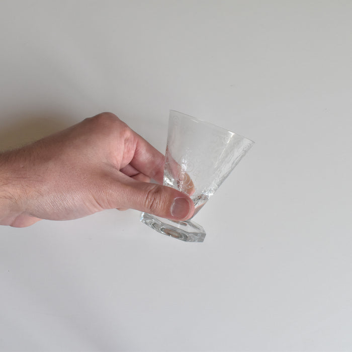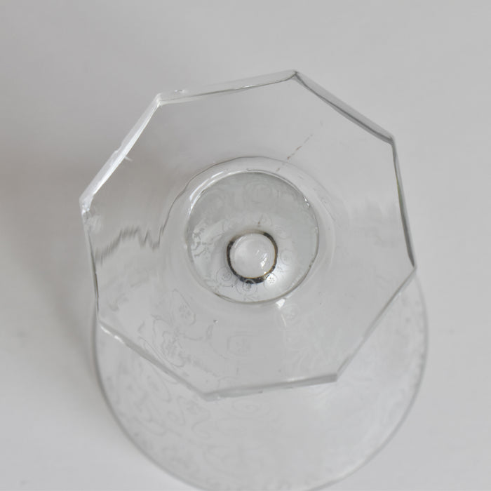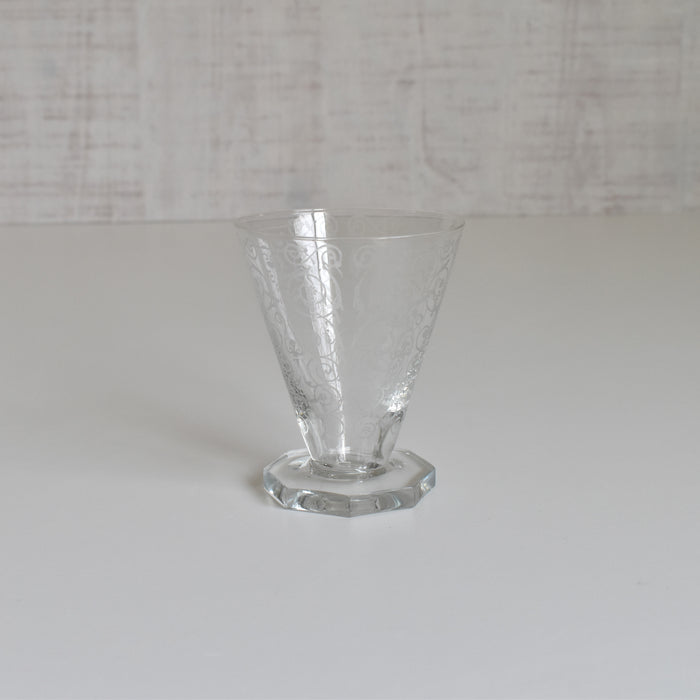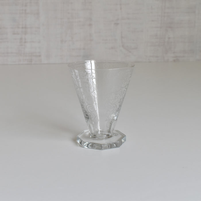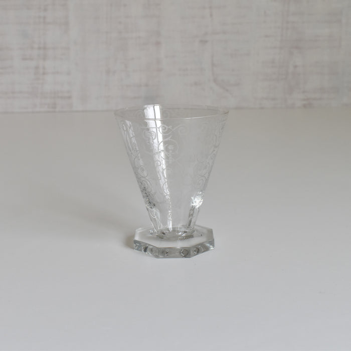 八角形のフット(脚部)が印象的な、ヴィンテージのスモールワイングラスです。