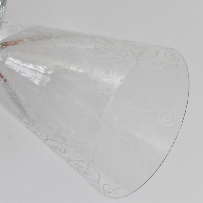 ボウル全体には、繊細で美しい花や唐草模様を思わせるグラヴィールが施されており、光を透かすと優雅な模様が浮かび上がり、見る角度によって異なる表情を楽しめます。