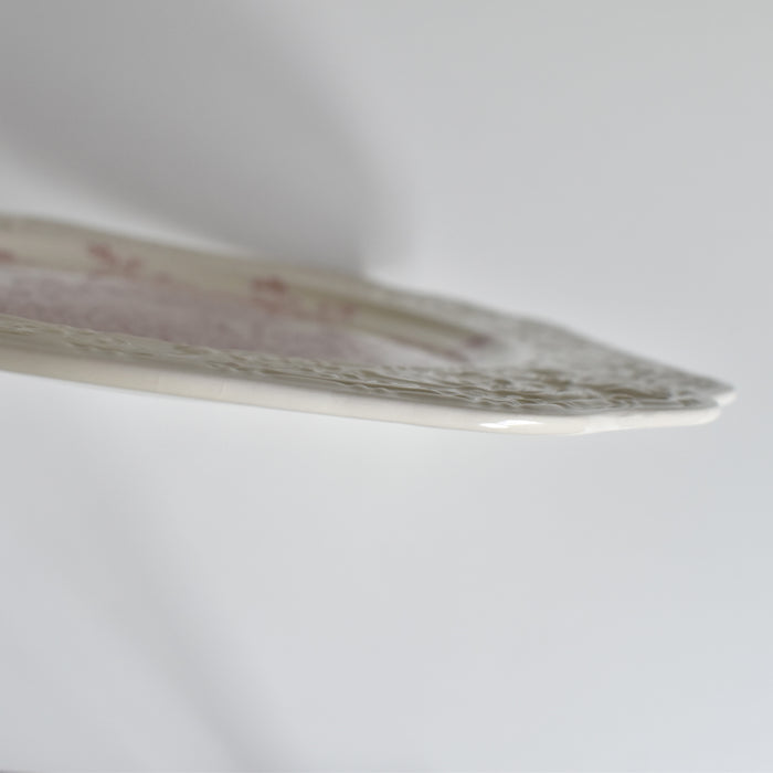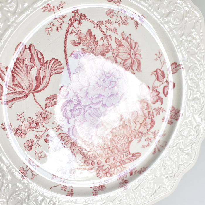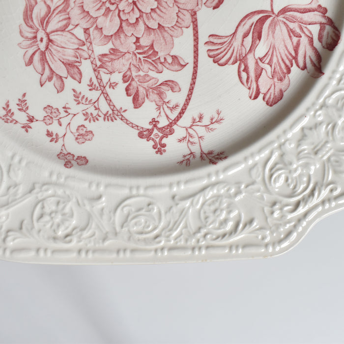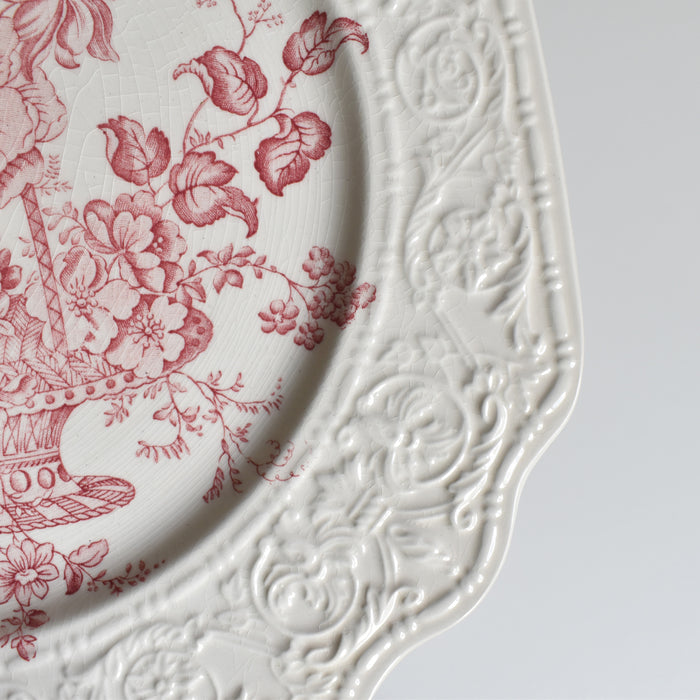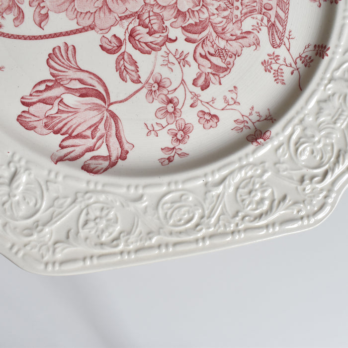 細やかなレリーフが美しいヴィンテージプレート。珍しいスクエア型のプレートには、豪華な花のパニエの画柄が描かれ、華やかで上品なデザインが魅力的です。