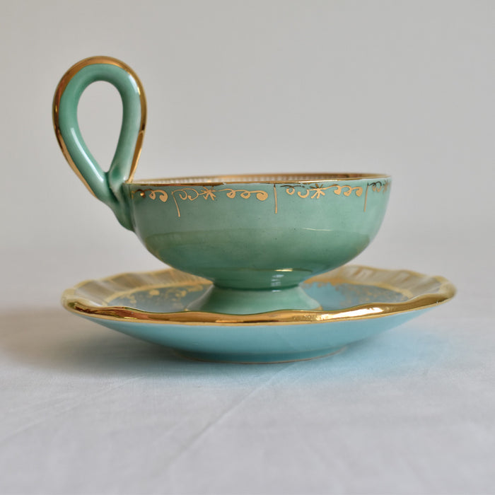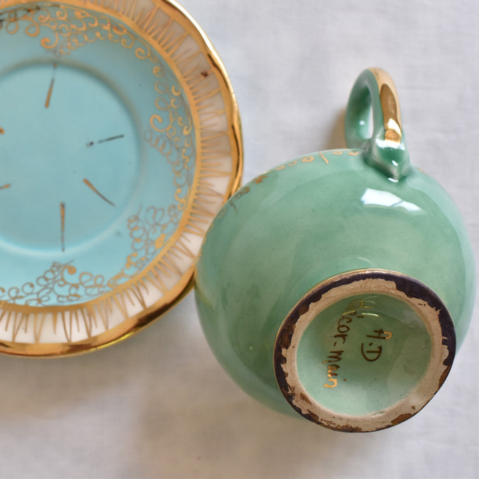 ア.ドラサンヴァル A.Dressinval コーヒーカップ&ソーサー ライトグリーン&ブルー
