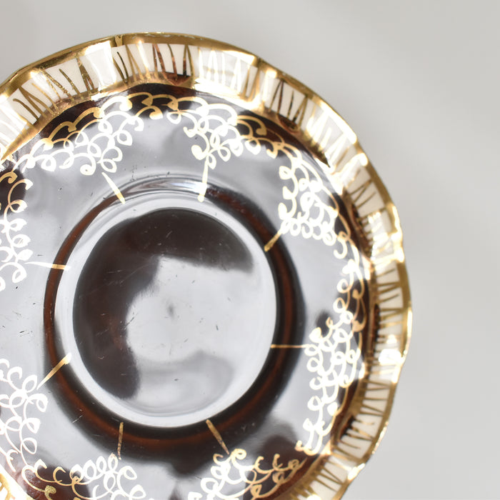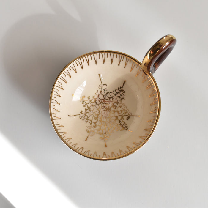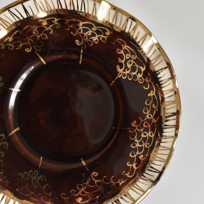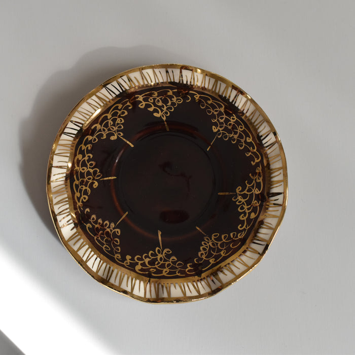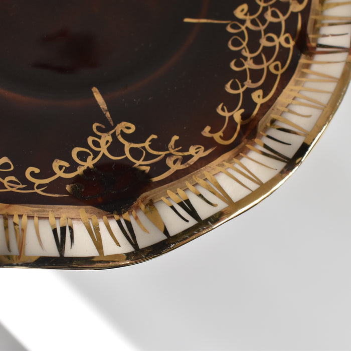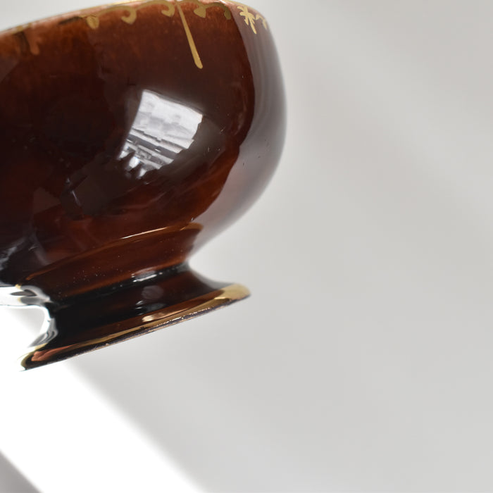 こっくりとしたブラウンに金彩が重なり、シックながらも目をひく色合いです。