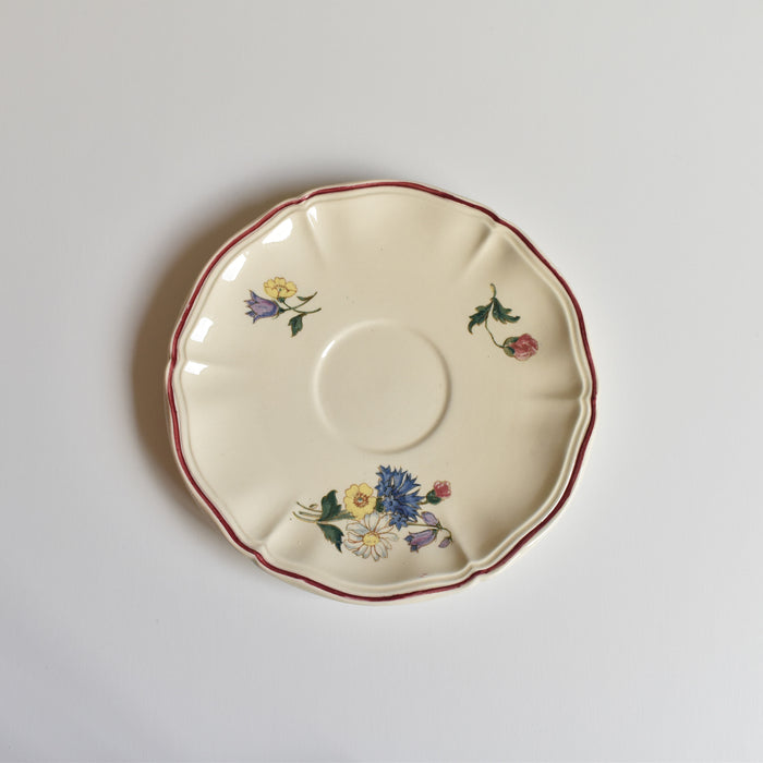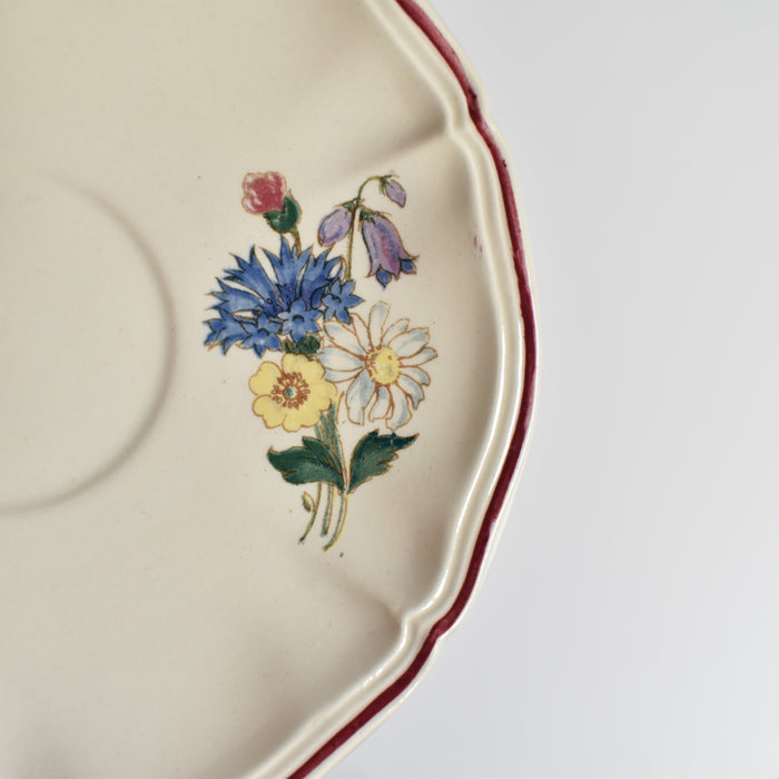 プレートに描かれているポピーやホタルブクロ、アザミや雛菊などのブーケは、フランスの田舎の風景でよく見かける植物ばかり。
