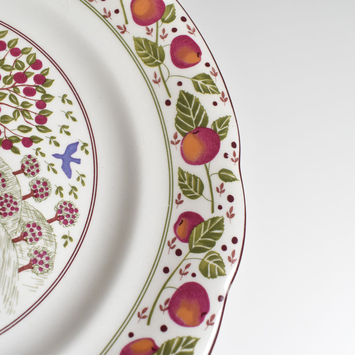 縁にはリズミカルなフルーツのガーランド、そして見込み部分はのどかなピクニックをイメージさせるのデザイン。