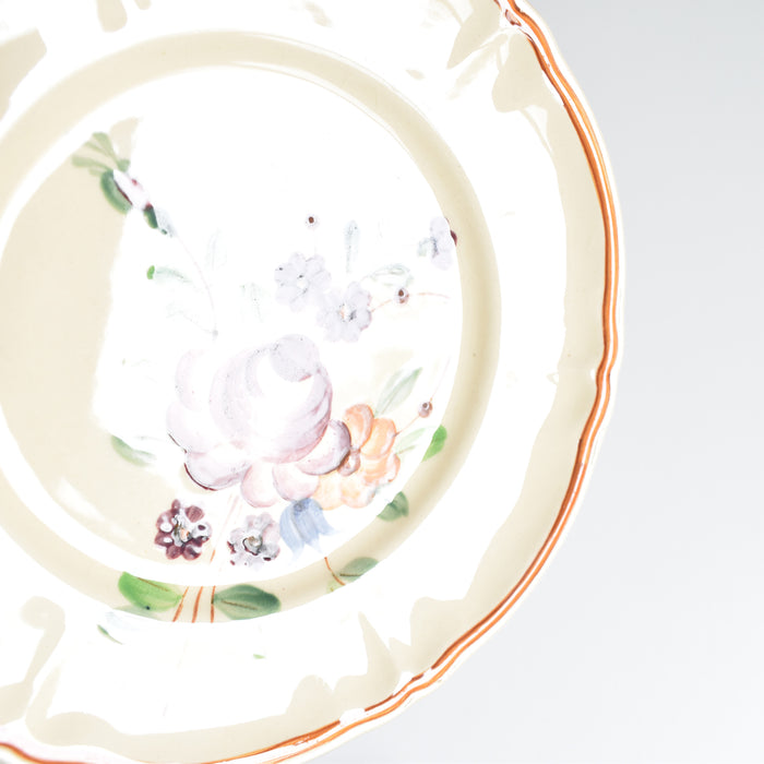 クリム色の花リムのお皿に手書きの可愛いらしいブーケが描かれています。