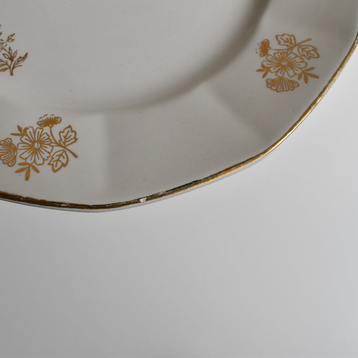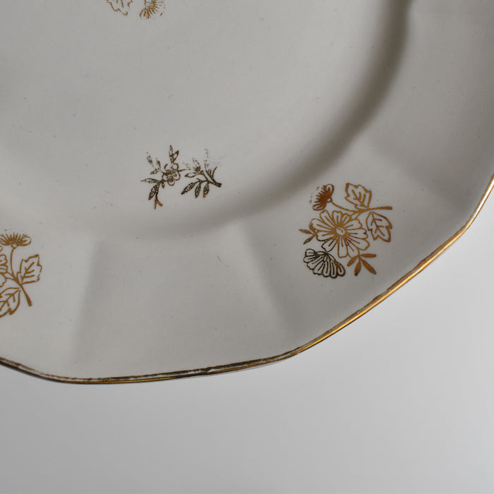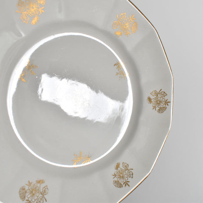 白地に金彩が施され、上品で華やかな印象のデザートプレートです。
