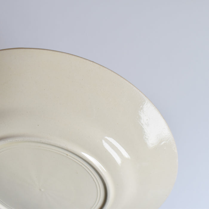 クリーム色のお皿に手書きでデザインされているオレンジ色の花が魅力的です。