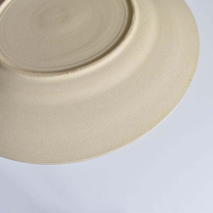 クリーム色のお皿に手書きでデザインされているオレンジ色の花が魅力的です。
