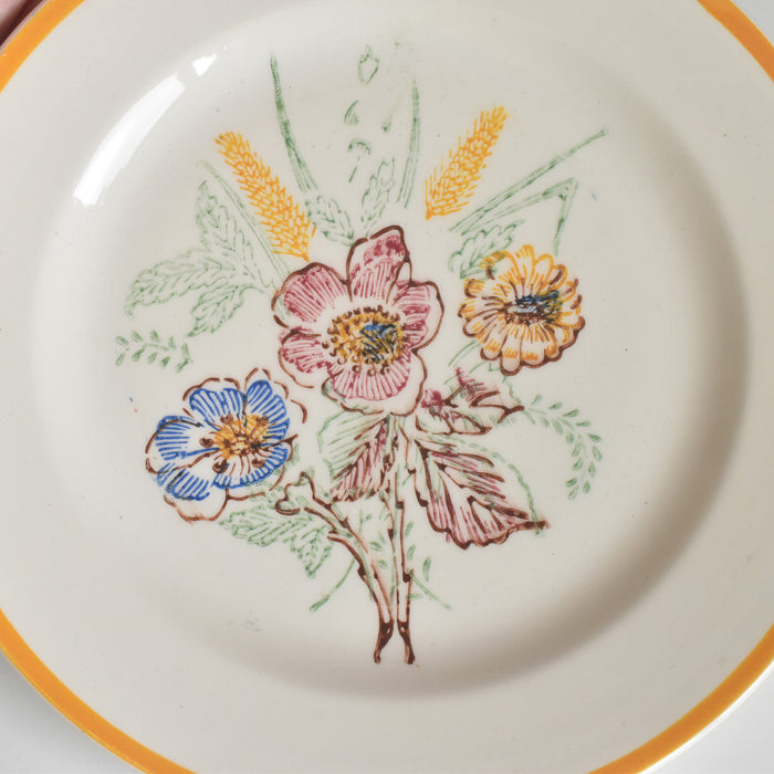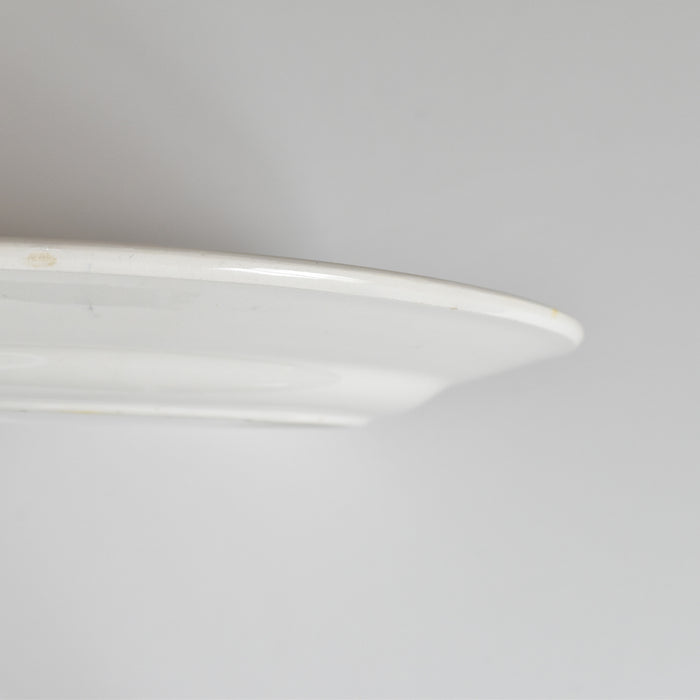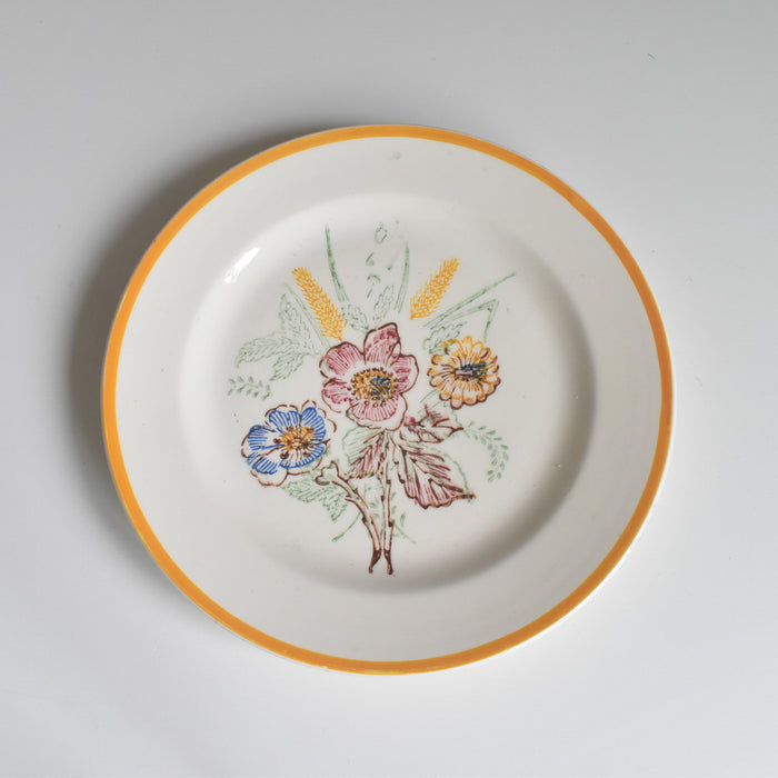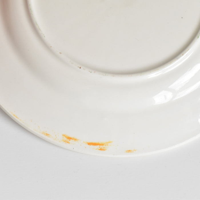 1950年代から1960年代に作られたこのプレートは、繊細な花のモチーフがスタンプ(転写)で施されており、食卓に明るさと時代を超えた美しさをもたらします。