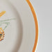 プレートの縁を彩る鮮やかなオレンジ色のボーダーは、この時代の特徴的な美意識を象徴しています。