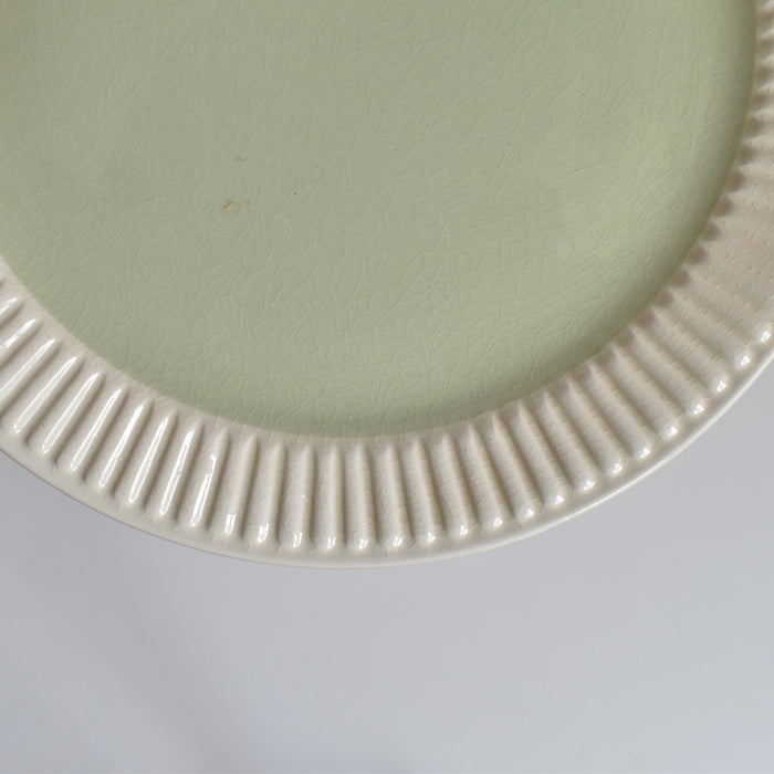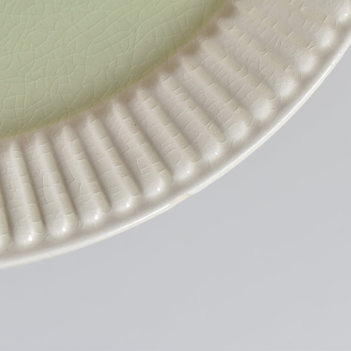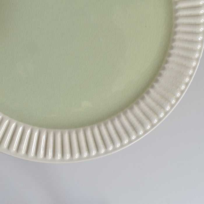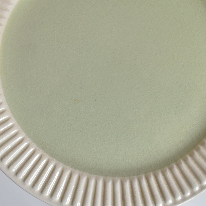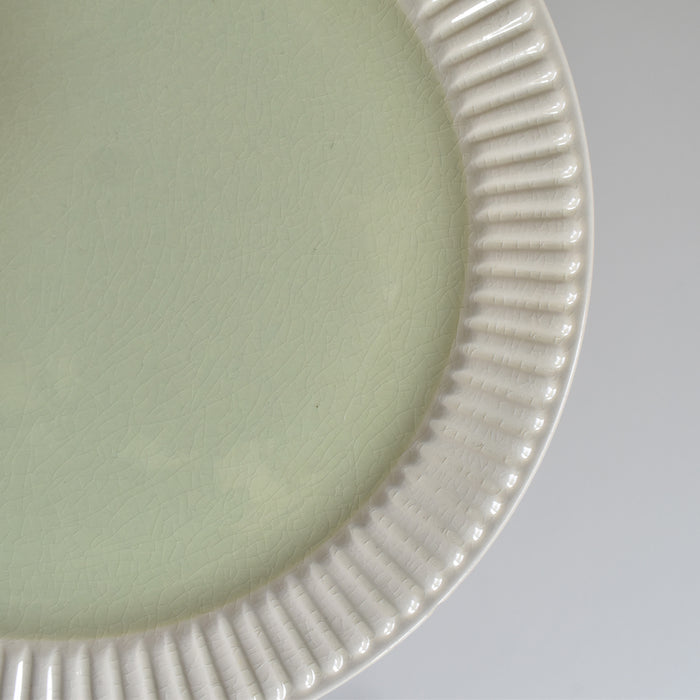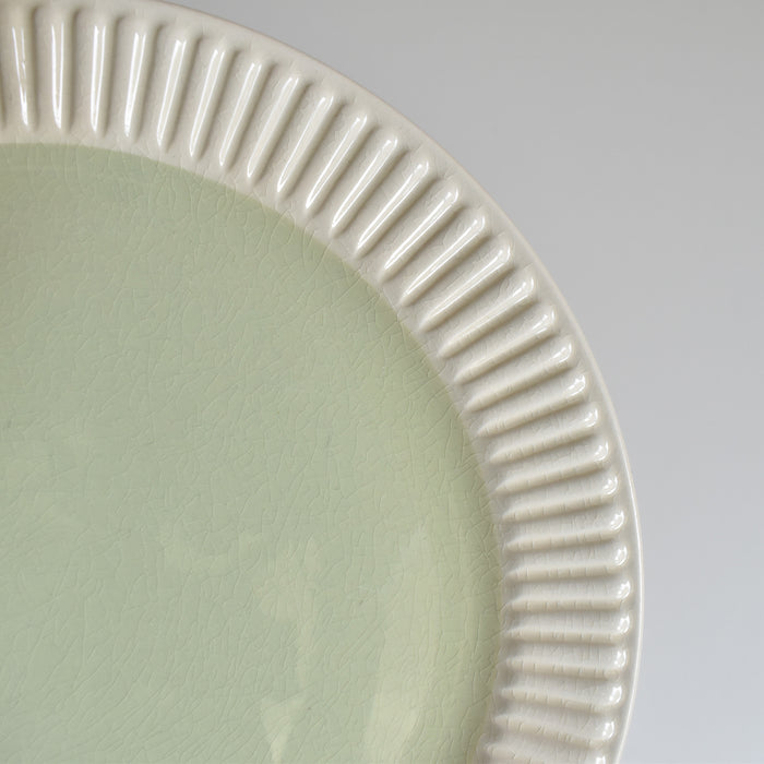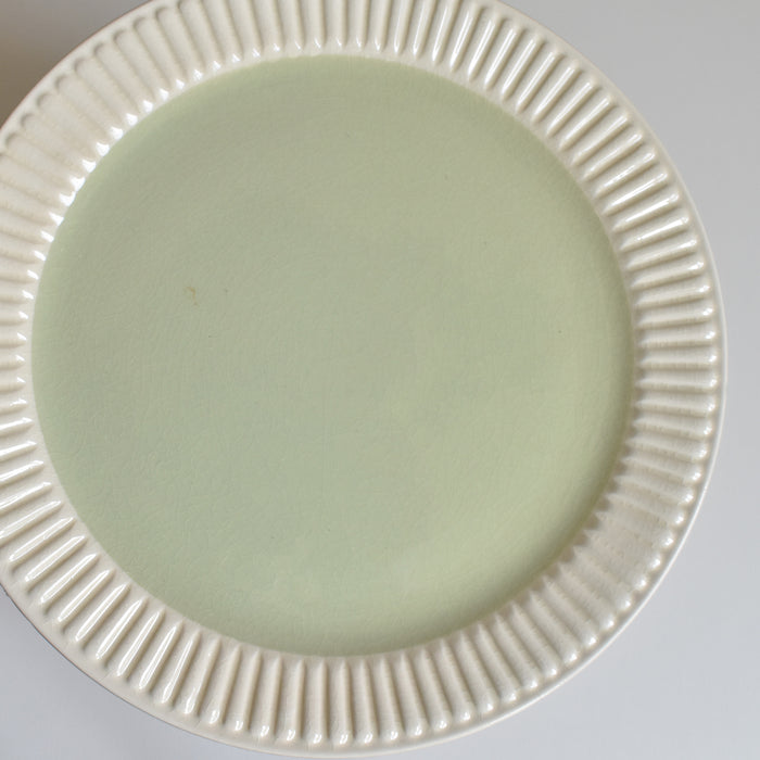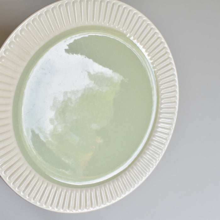 パステルグリーンの見込みとリムにレリーフが施されていてシンプルで可愛いらしいデザートプレートです。