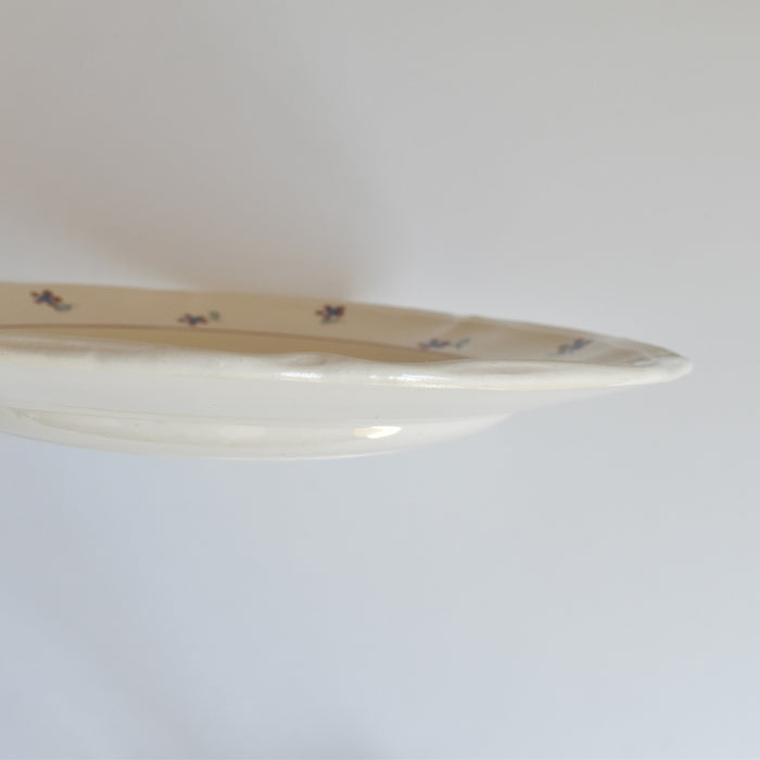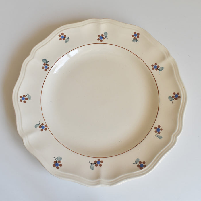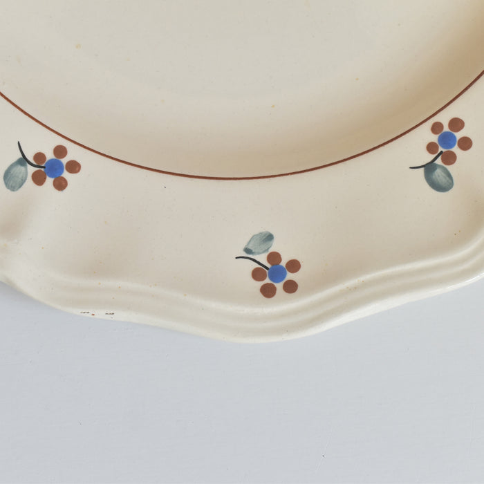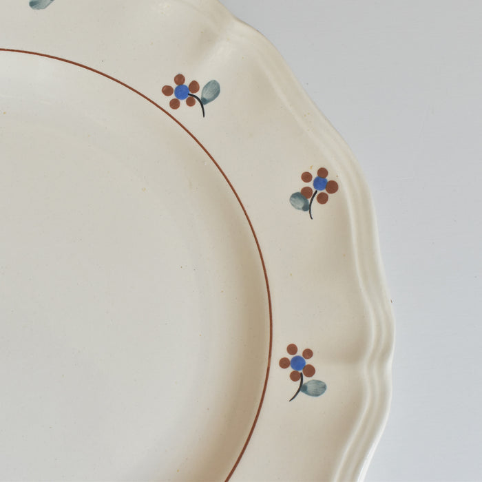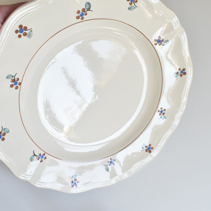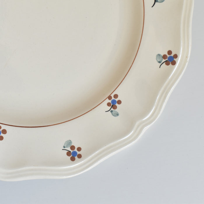 縁に施された手描きの小花が、このプレートに独特の温もりと個性を与えています。