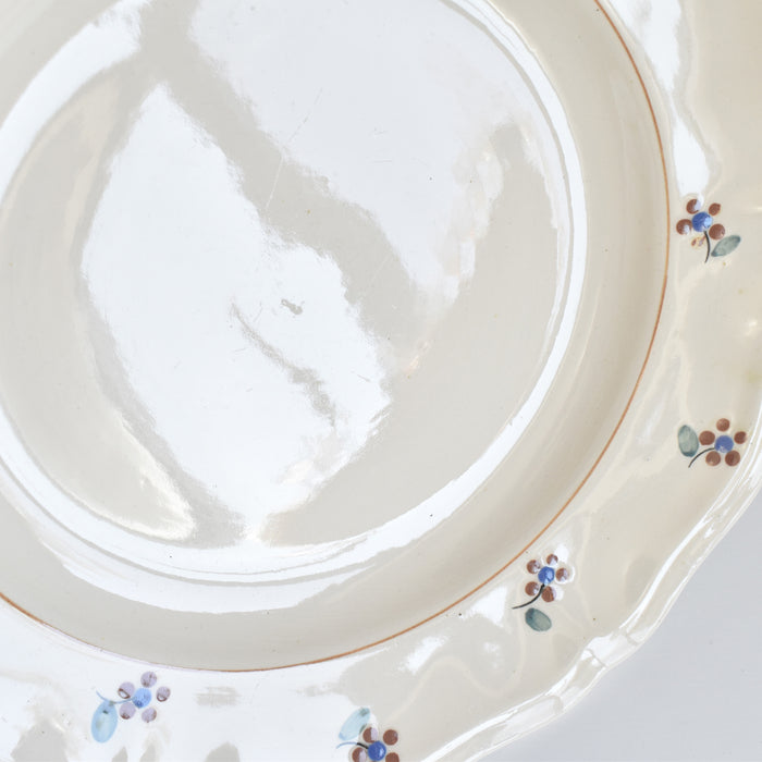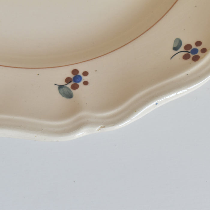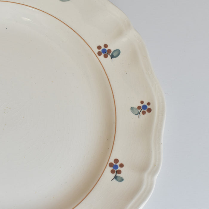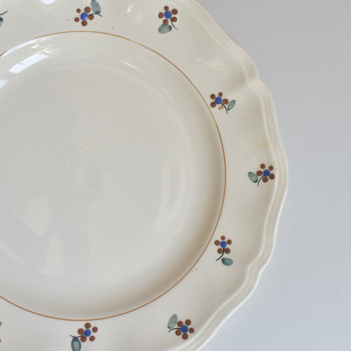 縁に施された手描きの小花が、このプレートに独特の温もりと個性を与えています。