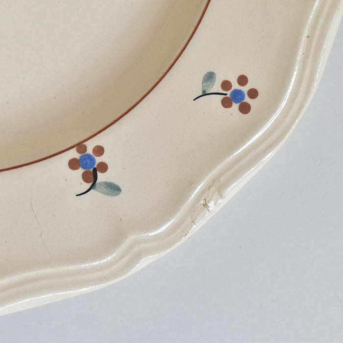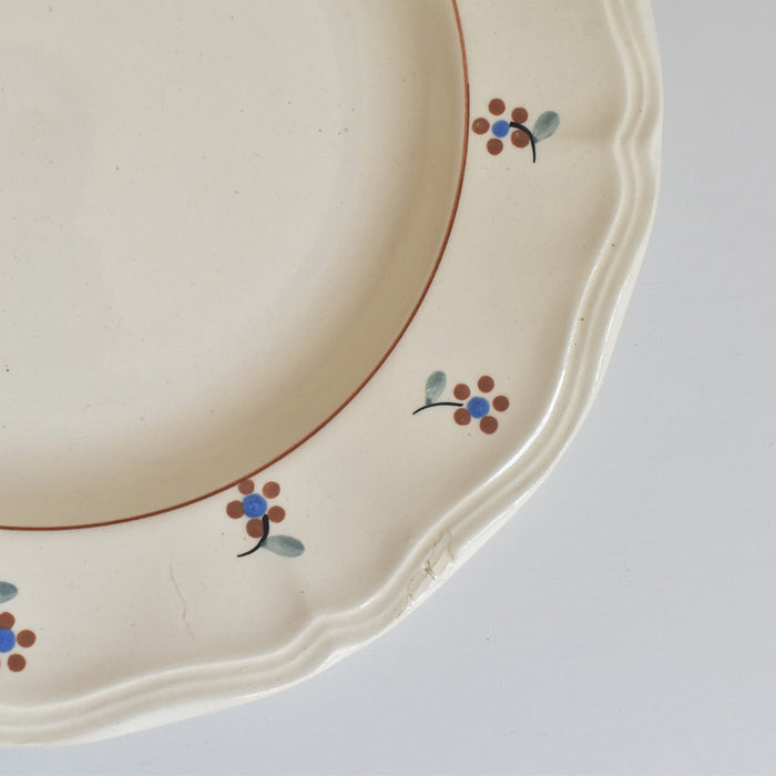 縁に施された手描きの小花が、このプレートに独特の温もりと個性を与えています。