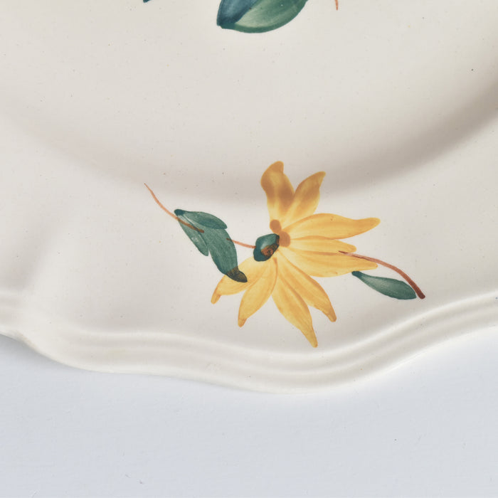 「花リム」と呼ばれるエレガントなスカラップ状の縁が特徴で、鮮やかな手描きの花々がプレートを彩ります。