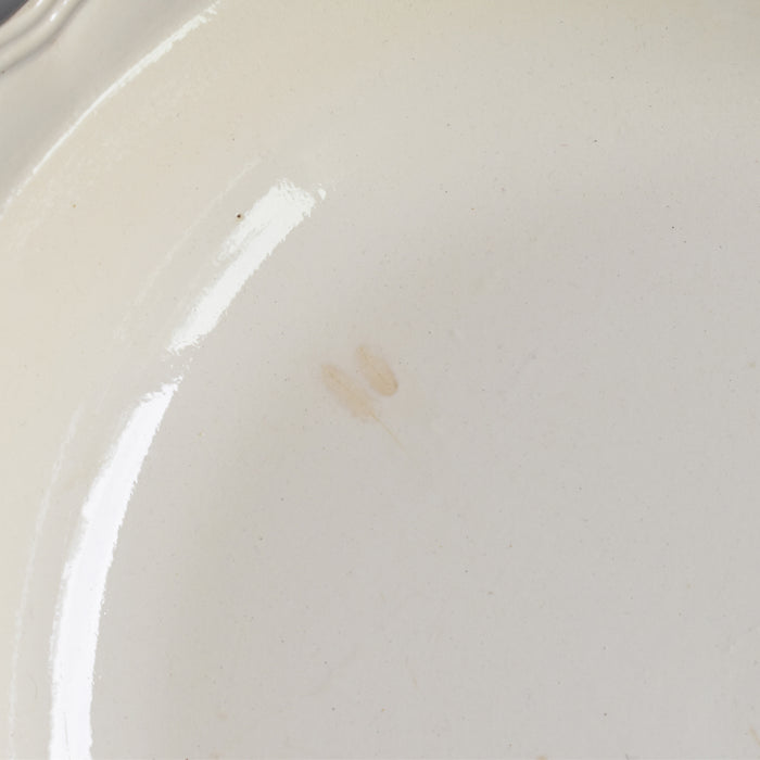 状態:縁に数カ所に欠けがございますまた見込みにカトラリー跡によるシミがございますが大きいなダメージがなく比較的にいい状態です。