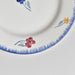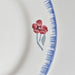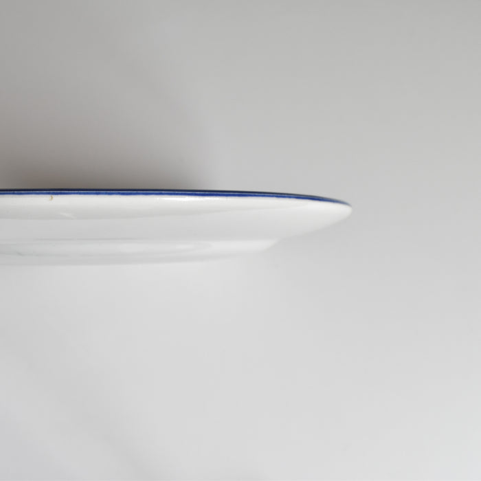 縁には、手描きによる鮮やかな青いラインが施され、白い地とのコントラストが美しく、お皿全体を引き締めています。