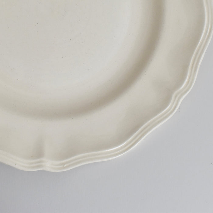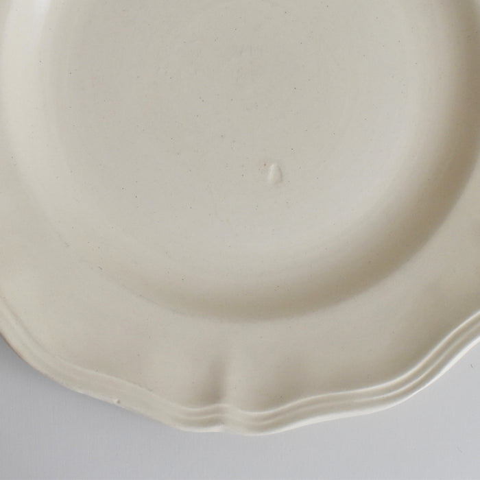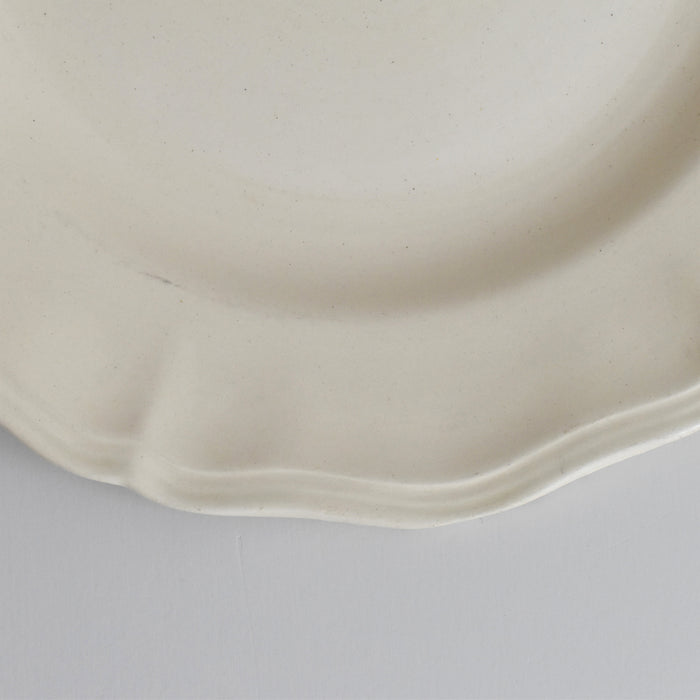 シンプルながらも美しい花リムと、少しクリームがかった色合いが、優しく可憐な印象を生み出します。