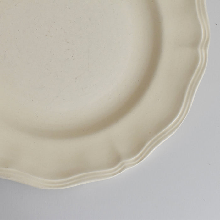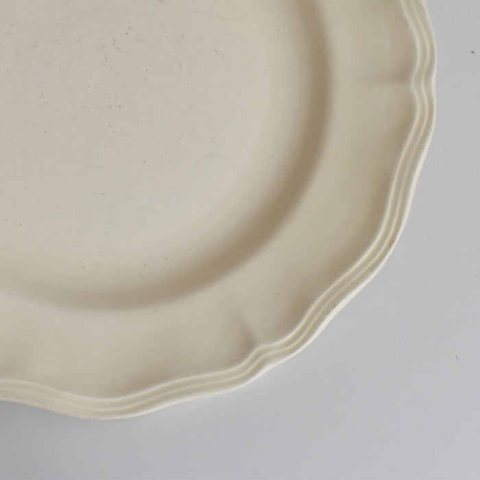 シンプルながらも美しい花リムと、少しクリームがかった色合いが、優しく可憐な印象を生み出します。