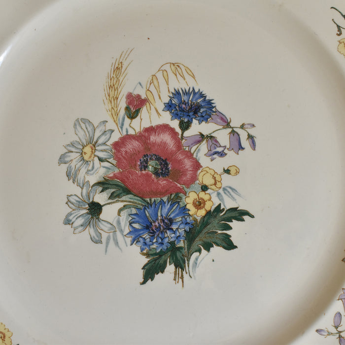 プレートに描かれているポピーやホタルブクロ、アザミや雛菊などのブーケは、フランスの田舎の風景でよく見かける植物ばかり。