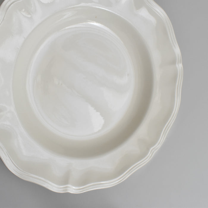 シンプルながらも美しい花リムと、少しクリームがかった色合いが、優しく可憐な印象を生み出します。