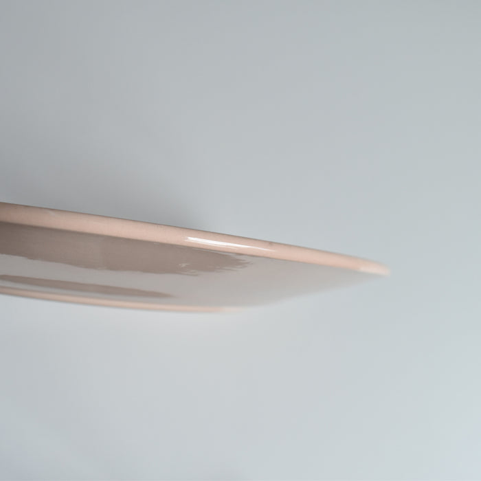 シンプルなデザインの可愛いらしいサーモンピンクのフォンデュプレート。