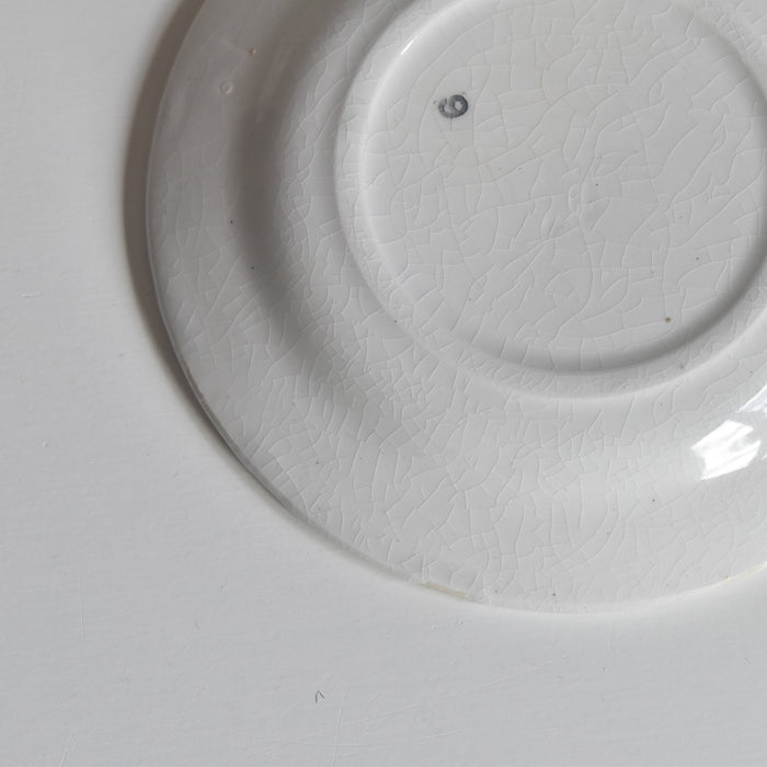 状態:経年による貫入とわずかなシミが見られ、縁から見込みにライン(ヒビ)がございますが、見た目は綺麗で良好な状態です。