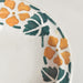 ステンシルで丁寧に描かれた黄色い花模様と葉っぱが印象的です。
